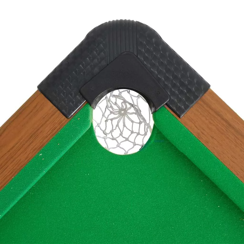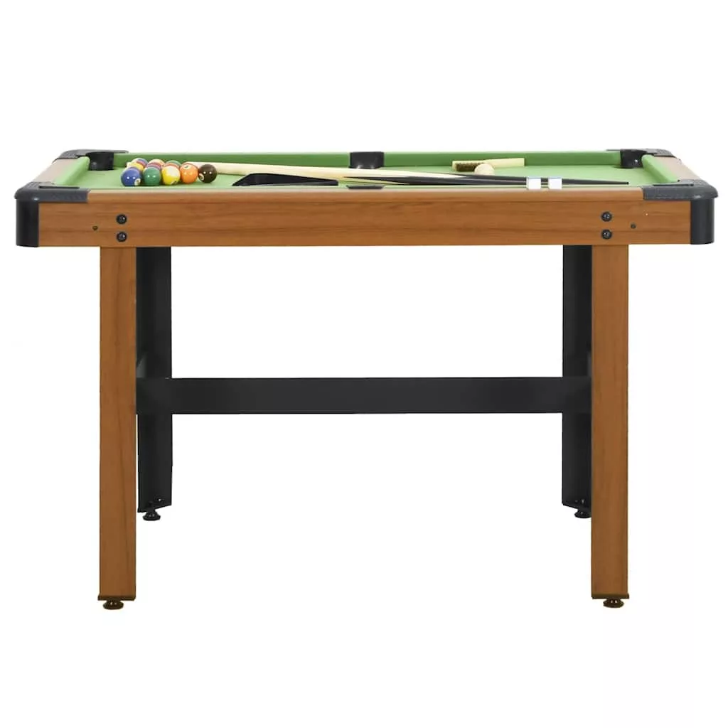 Élvezze a játékot a tökéletesség jegyében készült professzionális kivitelezésű biliárdasztalunkon! Elegáns és letisztult, 120 cm-es biliárdasztalunk bármely szoba, iroda vagy edzőterem igazi középpontja lesz! Ez a biliárdasztal PVC furnérréteggel bevont MDF-ből készült, ezzel garantálva a tartós minőséget. A beépített lábszintezők alaptartozékok, hogy kiegyenlítsék az egyenetlen játékteret. A játékfelületet kopásálló zöld kelme borítja, és a mérnöki tervezésnek köszönhetően nem vetemedik. Ez az asztal nemcsak nagyszerűen néz ki, de játszani is nagyon jó rajta, így kiváló alkalmat biztosít, hogy emlékezetes pillanatokat éljen meg barátaival vagy családjával! A csomag 2 dákót, 2 krétát, 1 biliárdháromszöget, 15 számozott biliárdgolyót, 1 fehér golyót és 1 kefét tartalmaz. Figyelem. 3 év alatti gyermekek számára nem alkalmas. Kis alkatrészek. Fulladást okozhat.