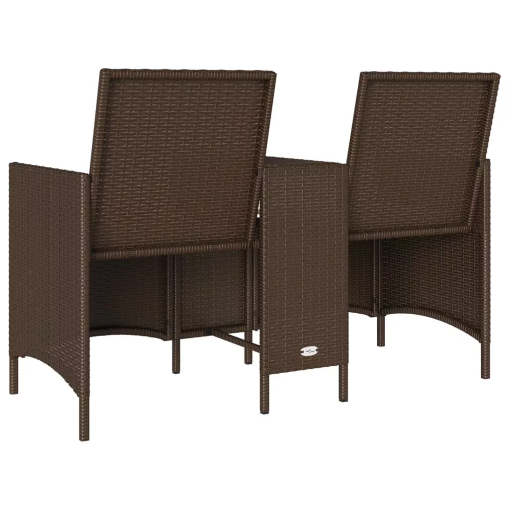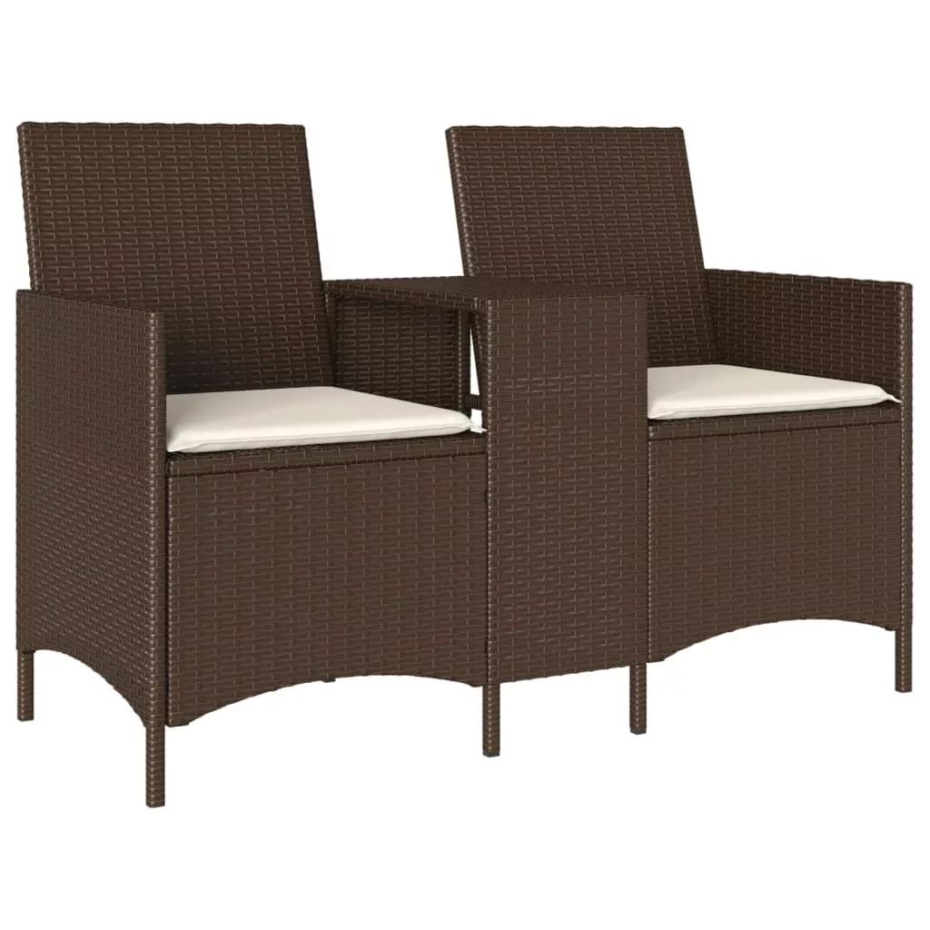 barna polirattan 2 személyes kerti kanapé asztallal és párnával
