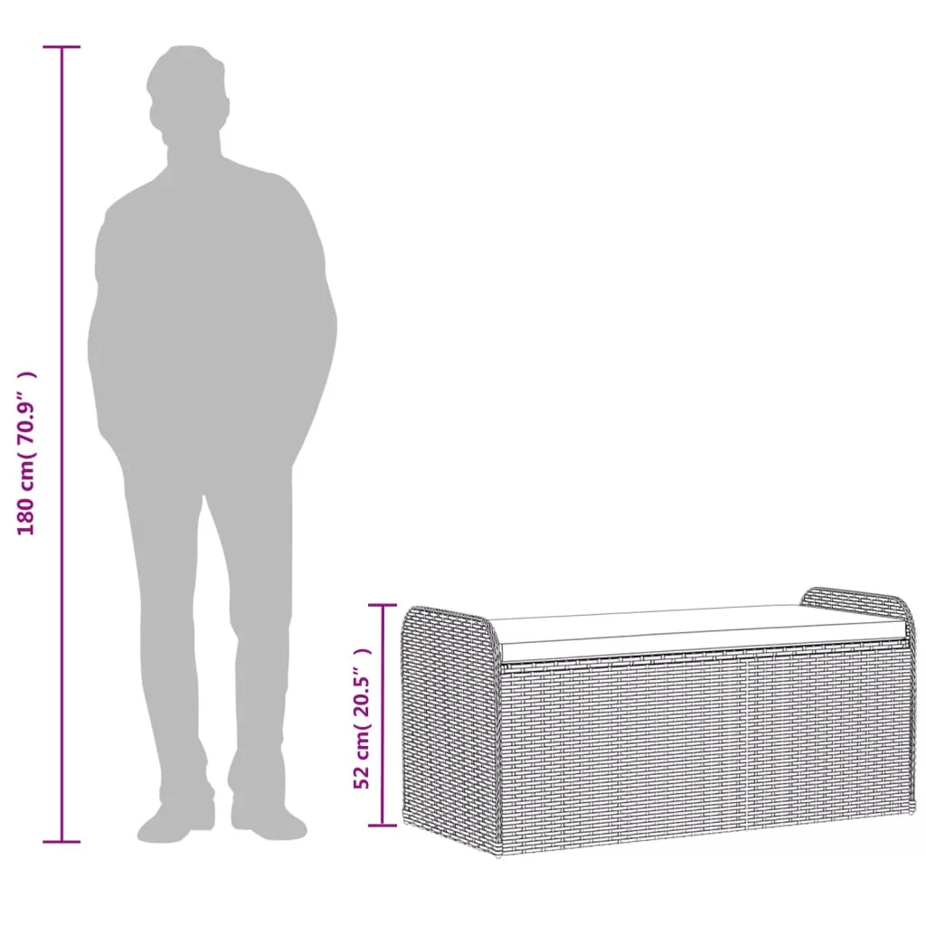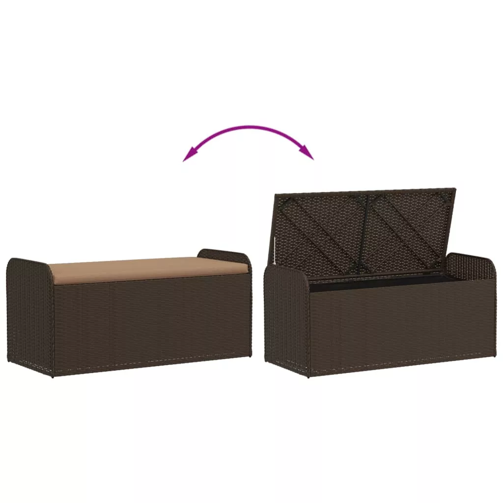 barna polyrattan tárolópad párnával 115 x 51 x 52 cm