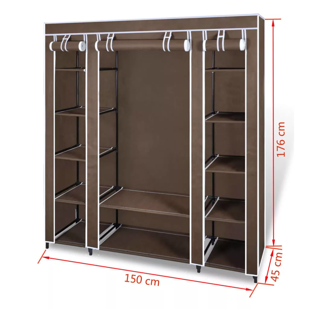 barna szövet ruhásszekrény tárolórekeszekkel 45x150x176 cm