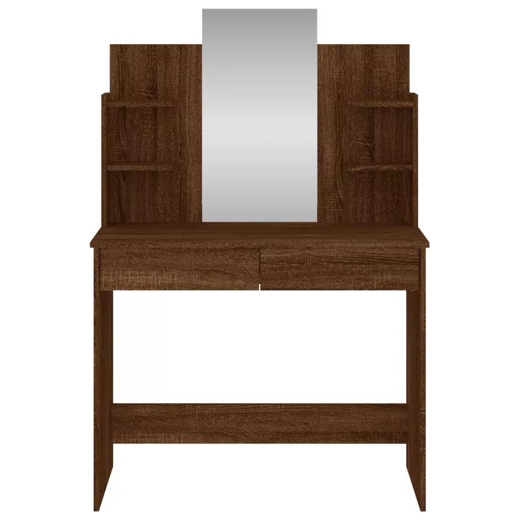 barna tölgy színű fésülködőasztal tükörrel 96x39x142 cm