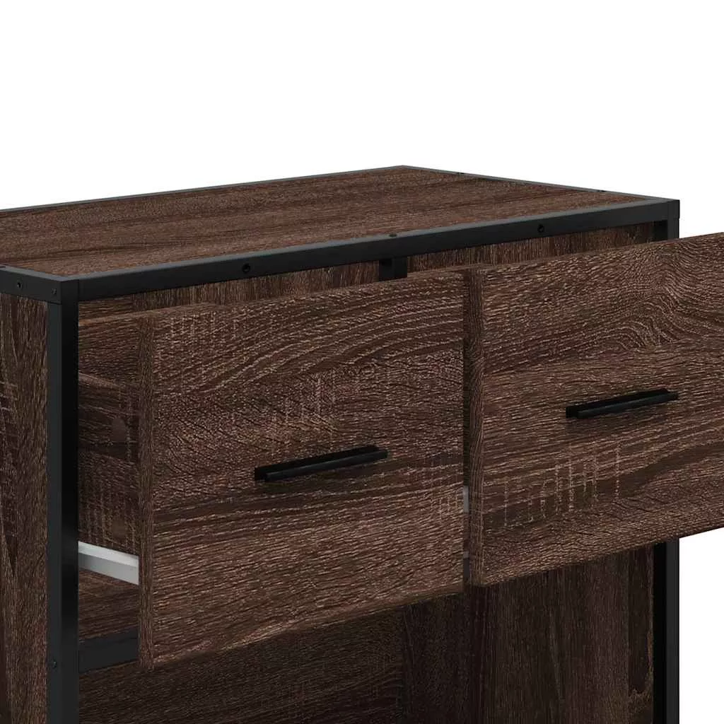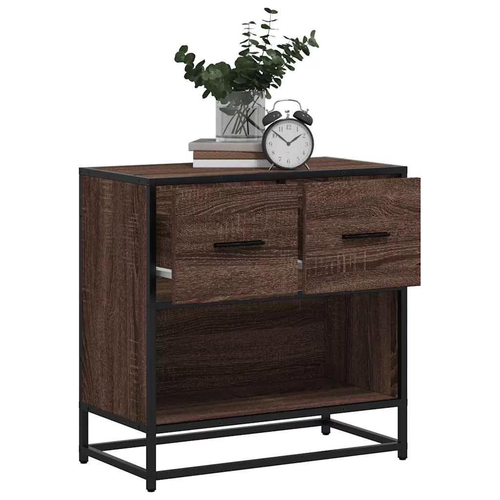 barna tölgy színű szerelt fa és fém éjjeliszekrény 60x31x60 cm