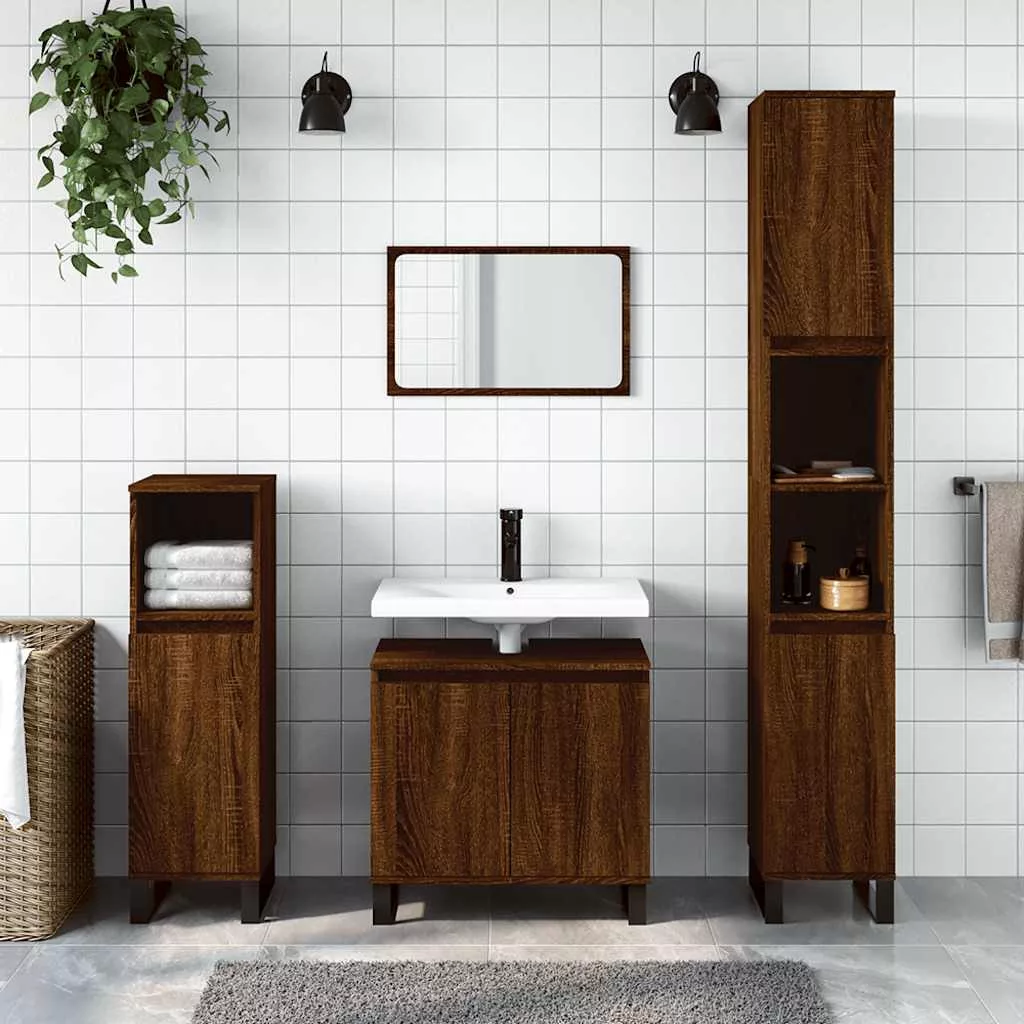 barna tölgyszínű szerelt fa fürdőszobaszekrény 58x33x60 cm