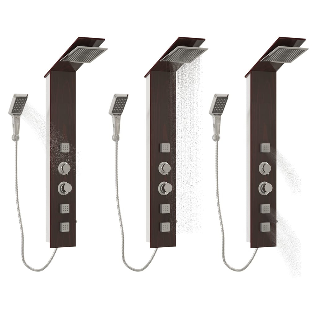 Ez a stílusos, többfunkciós zuhanyrendszer fürdőszobája nagyszerű kiegészítője lesz. Ez a zuhanytorony kiváló minőségű, famintázatú üvegből készült és 3 funkcióval ellátott: esőztető, masszázs és kézi tusolófej, melyek könnyedén kiválaszthatóak a forgatható gomb segítségével. Kényeztesse magát egy pihentető zuhanyzással és élvezze ennek a gyönyörű dizájnnal rendelkező zuhanyzópanel-rendszernek a modern stílusát!