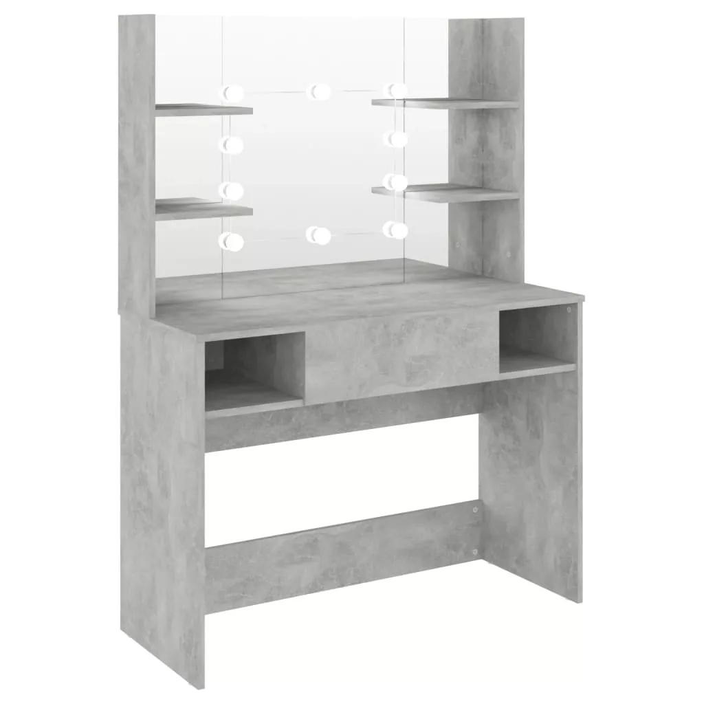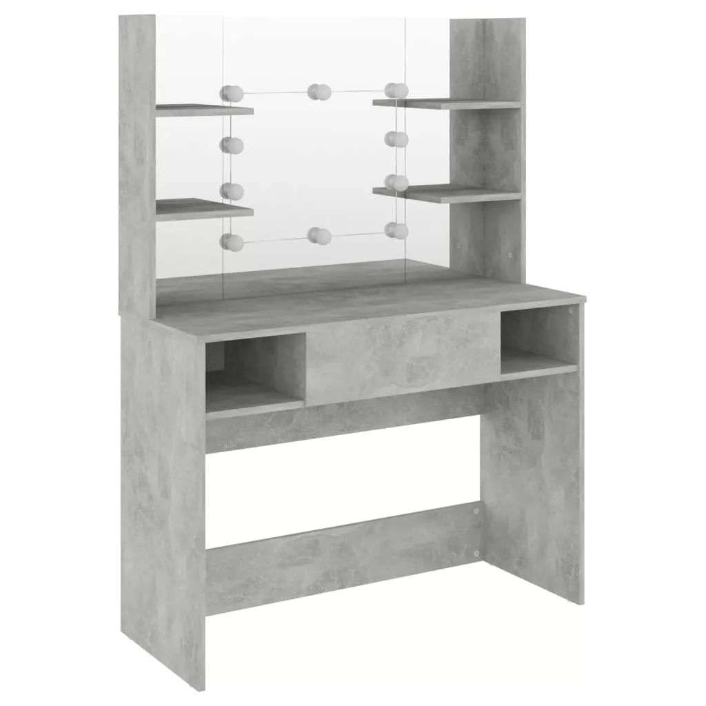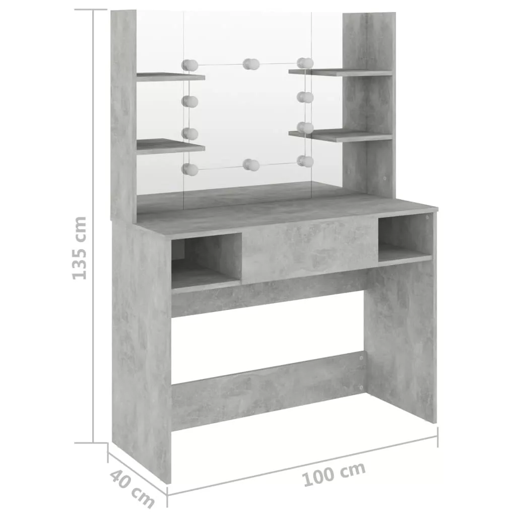 betonszürke LED-es MDF sminkasztal 100 x 40 x 135 cm