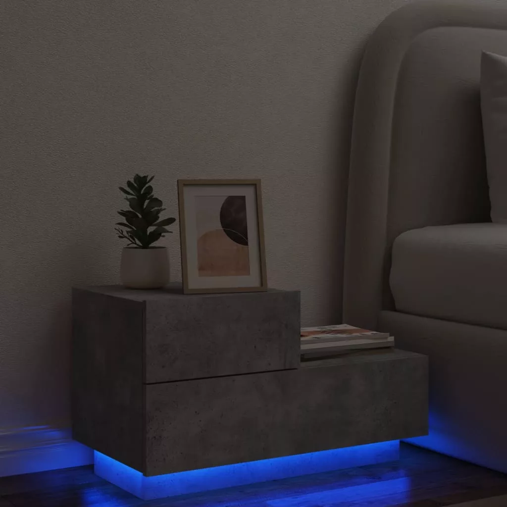 betonszürke éjjeliszekrény LED-fényekkel 70x36x40,5 cm