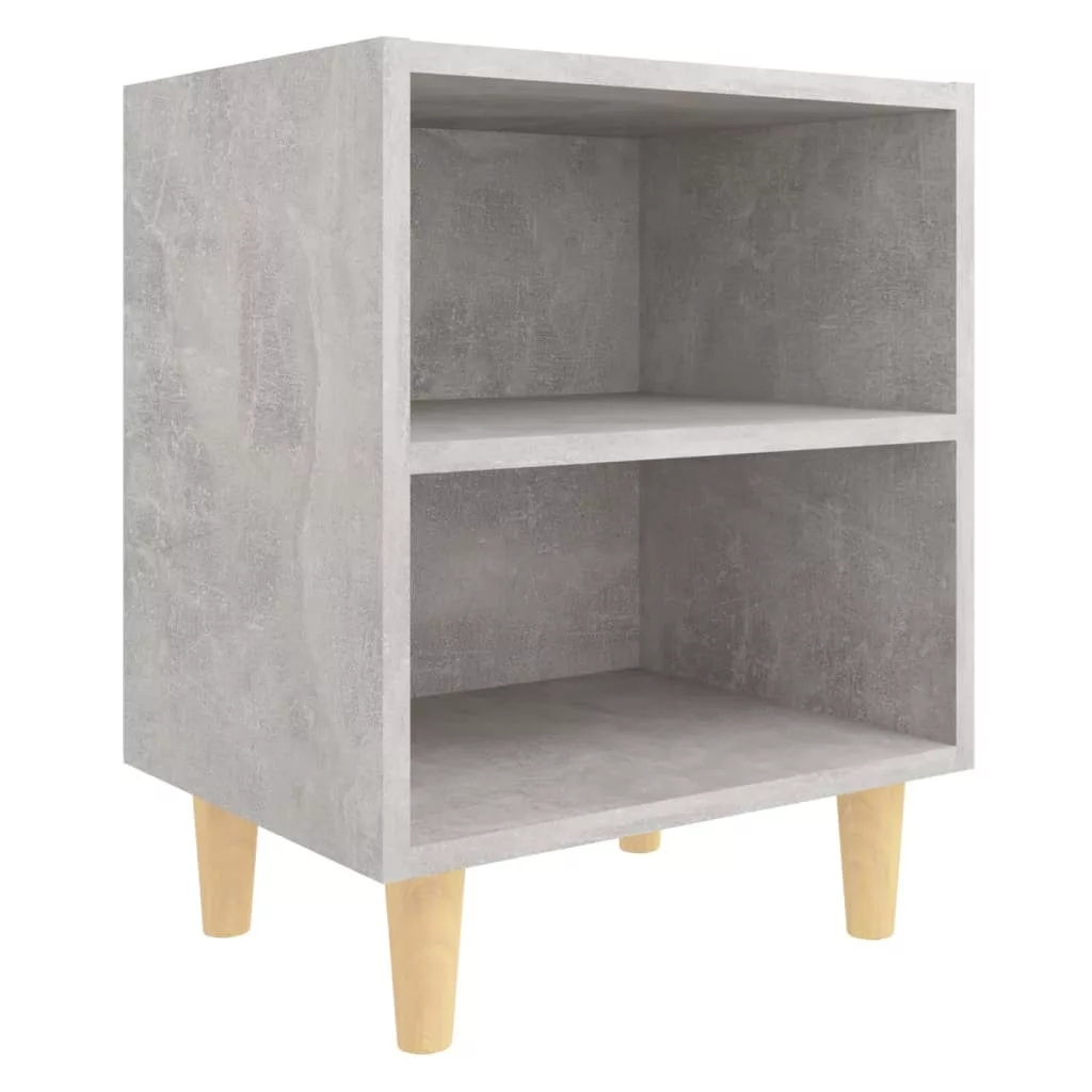 betonszürke éjjeliszekrény tömör fa lábakkal 40 x 30 x 50 cm