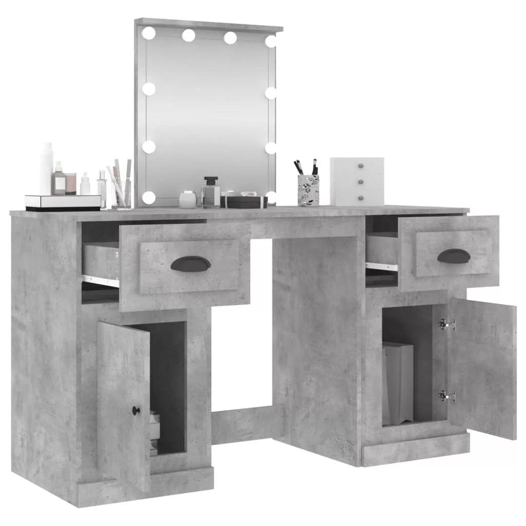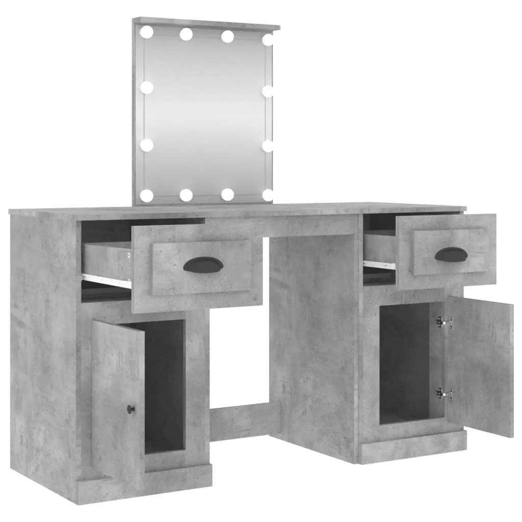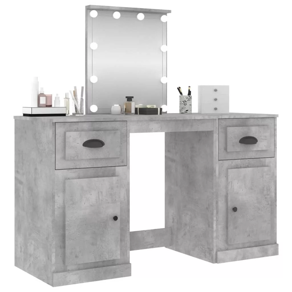 betonszürke fésülködőasztal LED-del 130 x 50 x 132,5 cm