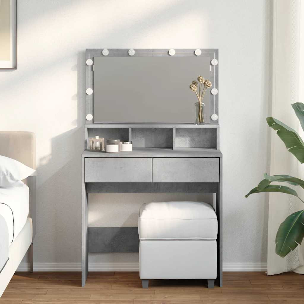 betonszürke fésülködőasztal LED-del 80 x 41 x 134,5 cm
