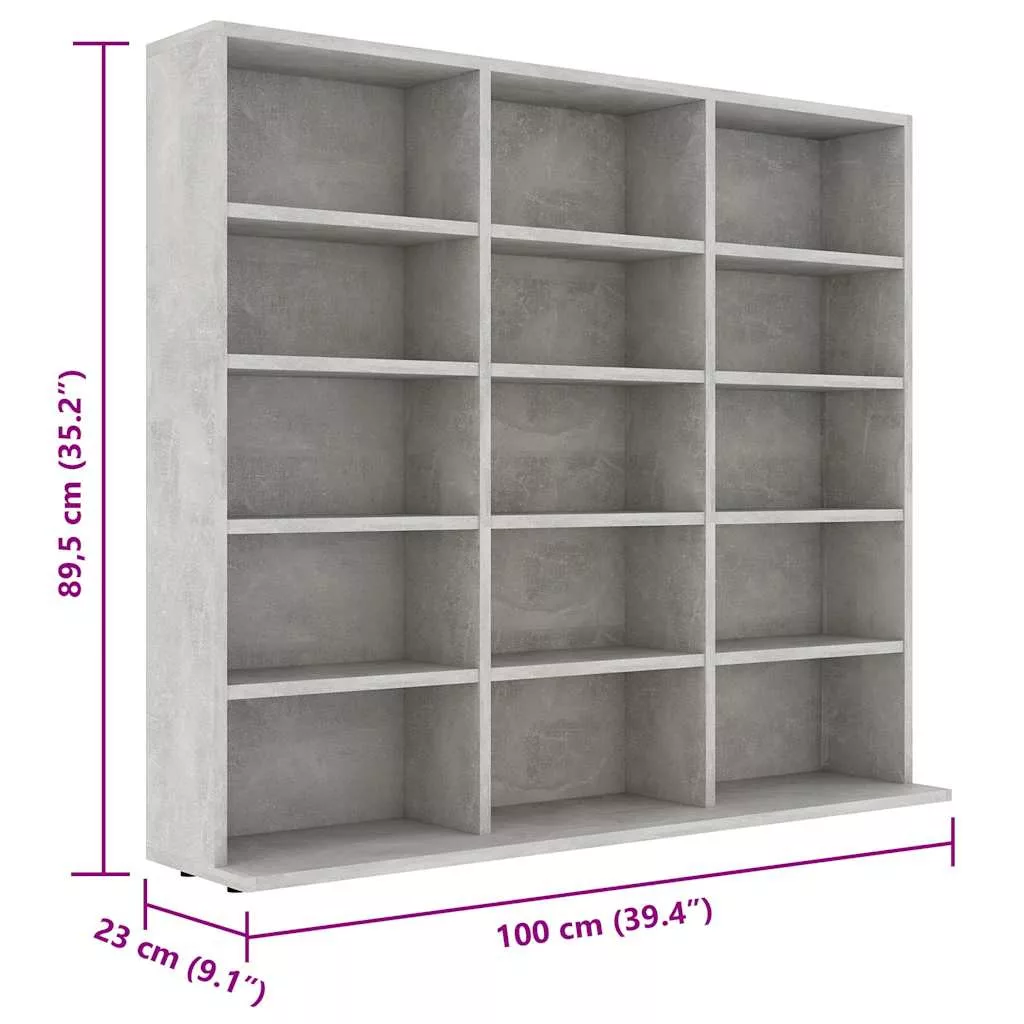 betonszürke forgácslap CD-tartó szekrény 100 x 23 x 89,5 cm