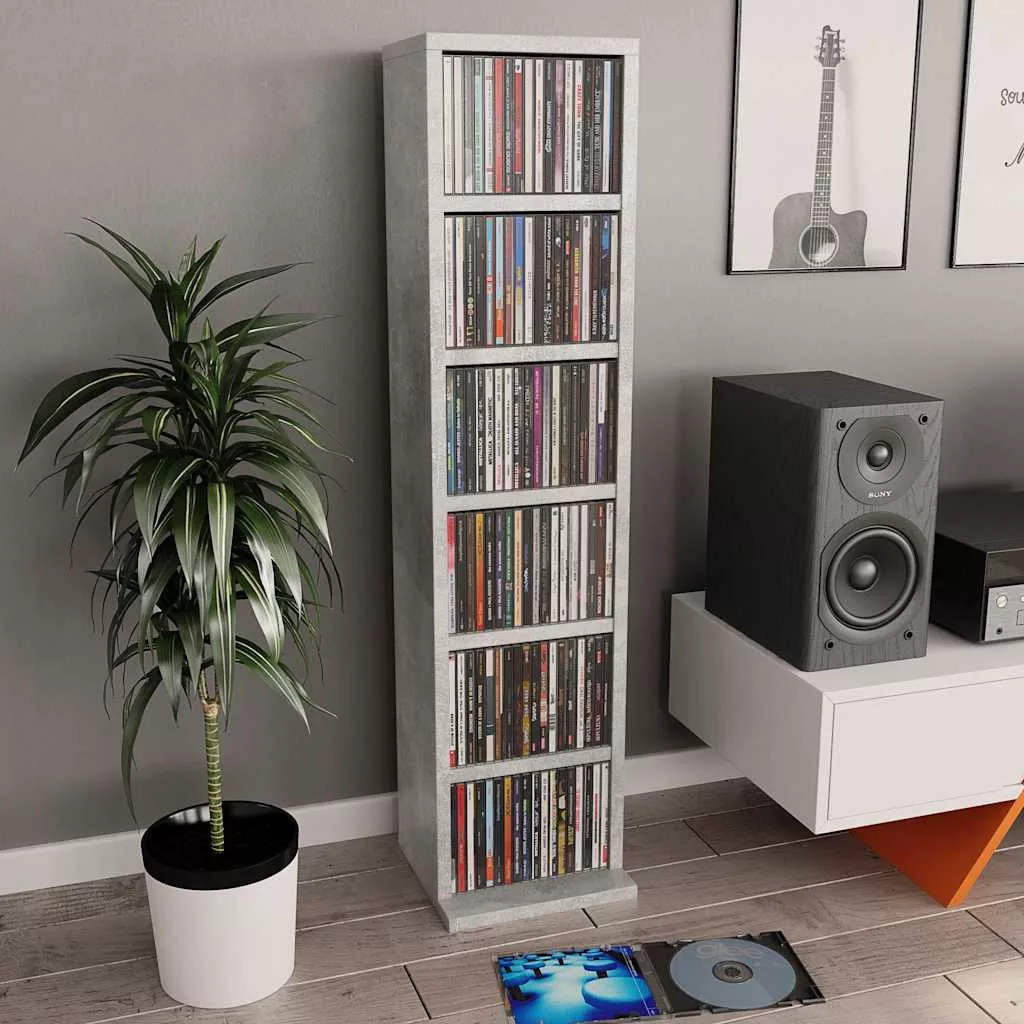 betonszürke szerelt fa CD-szekrény 21 x 20 x 88 cm