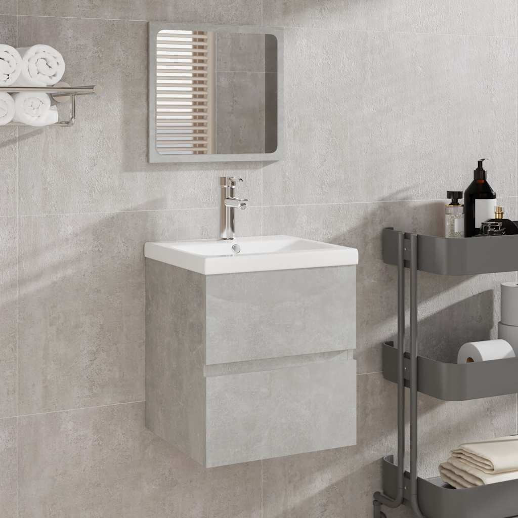 betonszürke szerelt fa fürdőszobaszekrény tükörrel