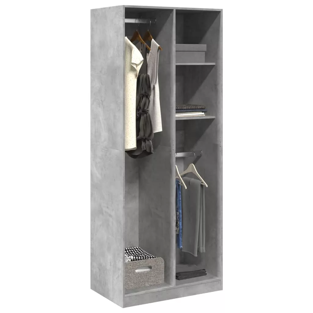 betonszürke szerelt fa ruhásszekrény 80 x 50 x 200 cm
