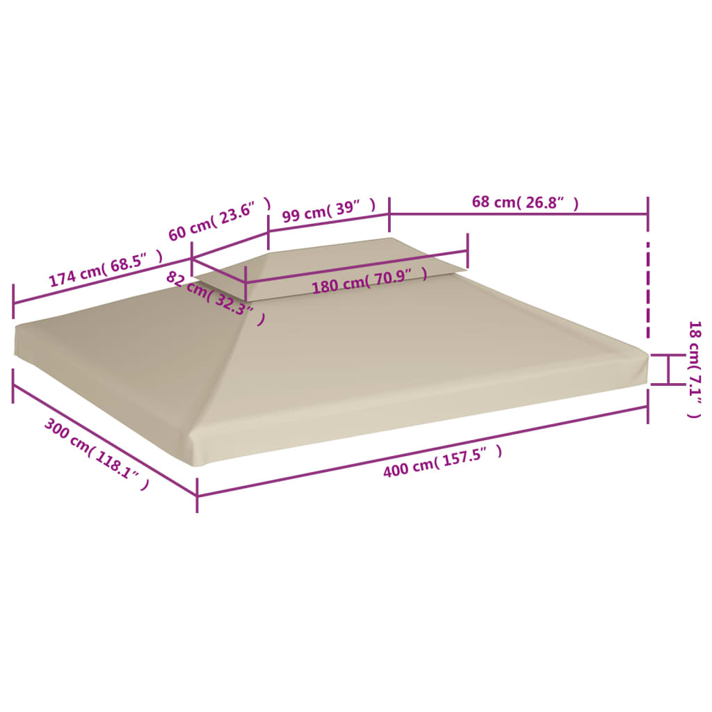 bézs csere pavilon ponyvatető 310 g / m² 3 x 4 m