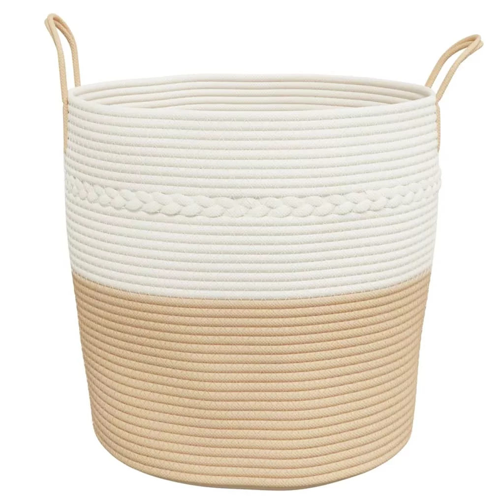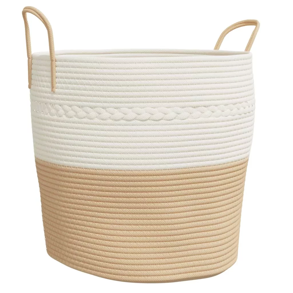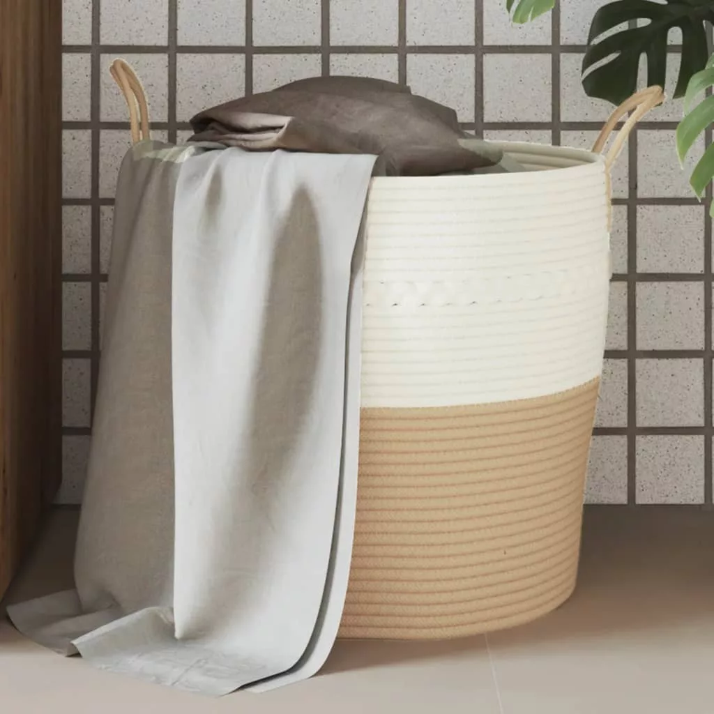 Ez a modern stílusú tárolókosár mindenkit lenyűgöz, és nem csupán praktikus, de igazán szemet gyönyörködtető is lesz bármely helyiségben. Tartós anyag: A kosár szőtt pamutkötelekből készült, amely egy légáteresztő, puha és kivételesen tartós anyag.Helytakarékos kialakítás: Az összecsukható kialakításnak köszönhetően használaton kívül könnyen tárolható, így az összecsukható tárolókosár ideális kis lakóterekbe.Egyszerű szállítás: A két erős fogantyúval ellátott takarótároló kosár kényelmes fogást és egyszerű szállítást biztosít.Sokoldalú kosarak: A dekoratív tárolókosár sokoldalú. Használható ruhák, törölközők, takarók, gyerekjátékok vagy egyéb otthoni holmik tárolására, elősegítve, hogy a környezet tiszta és rendezett maradjon. Jó tudni:Javasoljuk, hogy a kosár átvételekor tömje ki például párnákkal, hogy helyreálljon az alakja, vagy szükség esetén használjon vasalót a forma kialakításához.A kosár élettartamának meghosszabbítása érdekében kerülje a gépi mosást, mert alakját vesztheti. Ehelyett inkább óvatosan mossa ki kézzel a kosarat, ha szükséges.