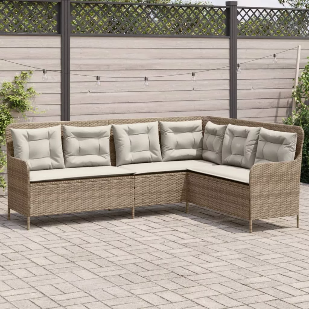 bézs polyrattan L-alakú kerti kanapé párnákkal