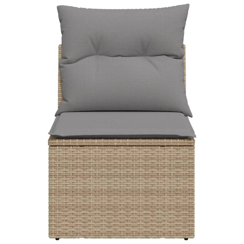 bézs polyrattan karfa nélküli kerti kanapé párnával