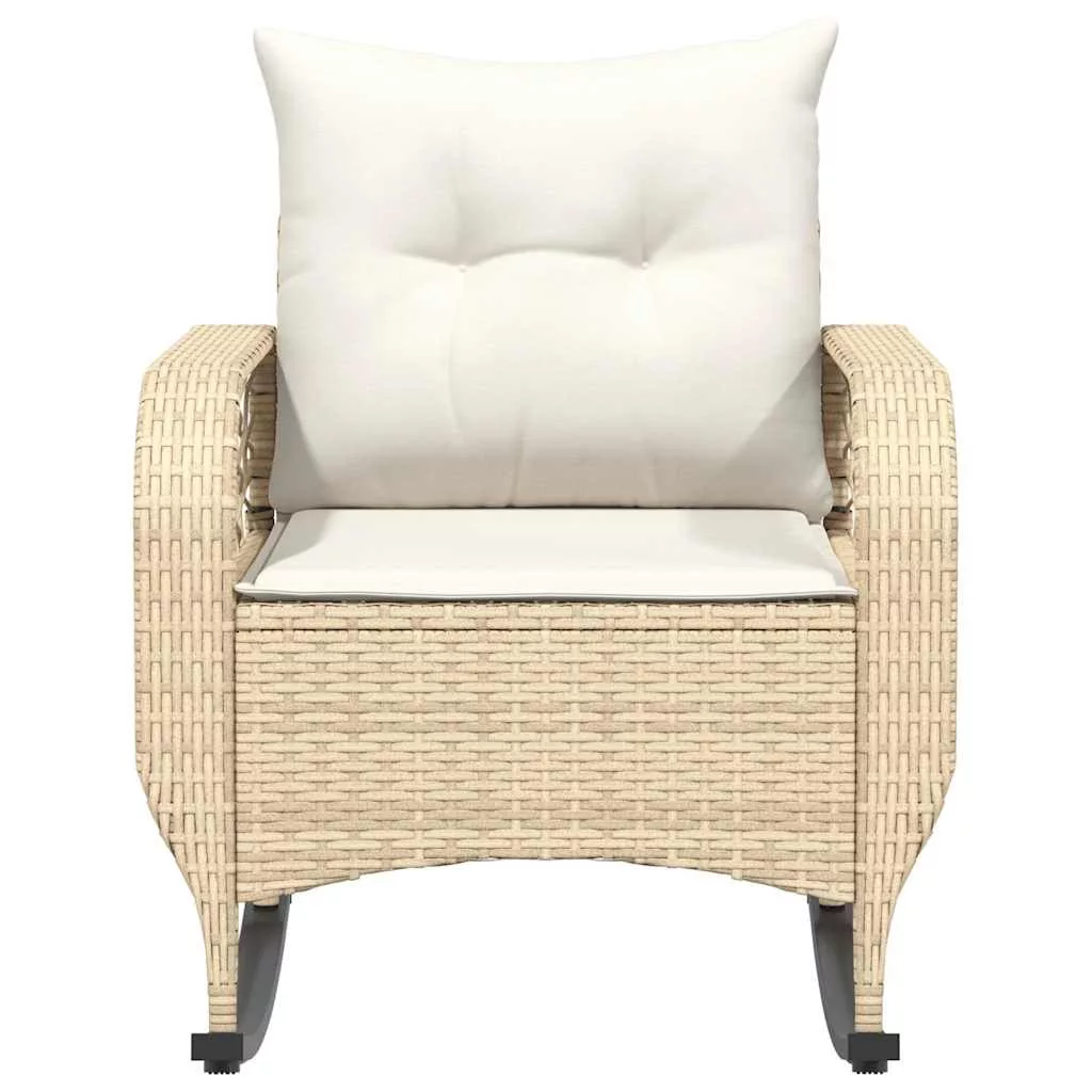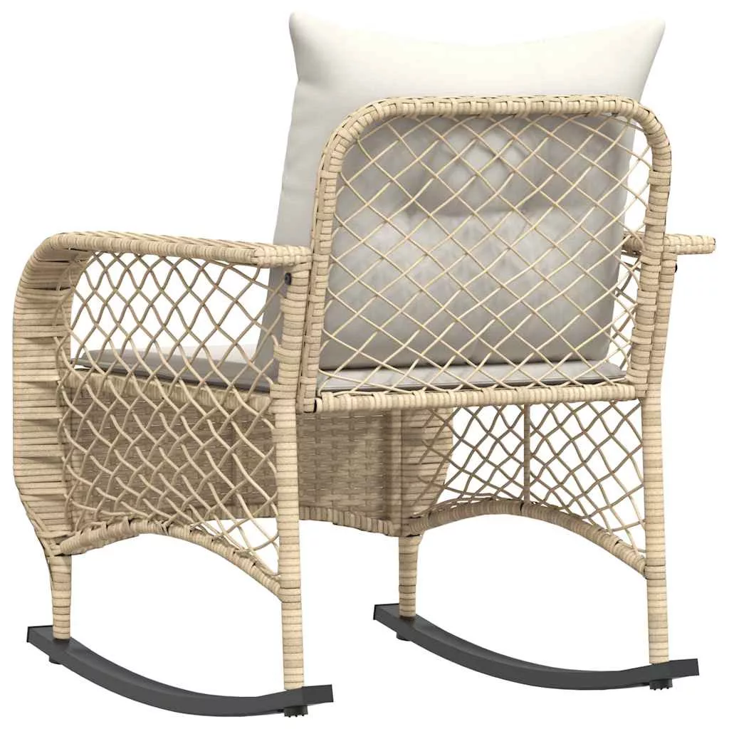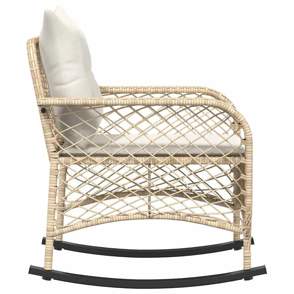 bézs polyrattan kerti hintaszék párnákkal