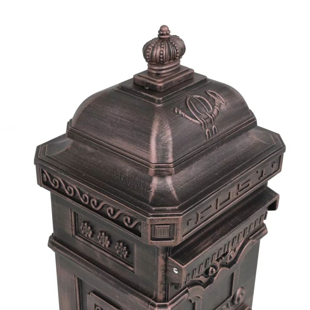 bronzszínű, vintage, rozsdamentes alumínium álló postaláda