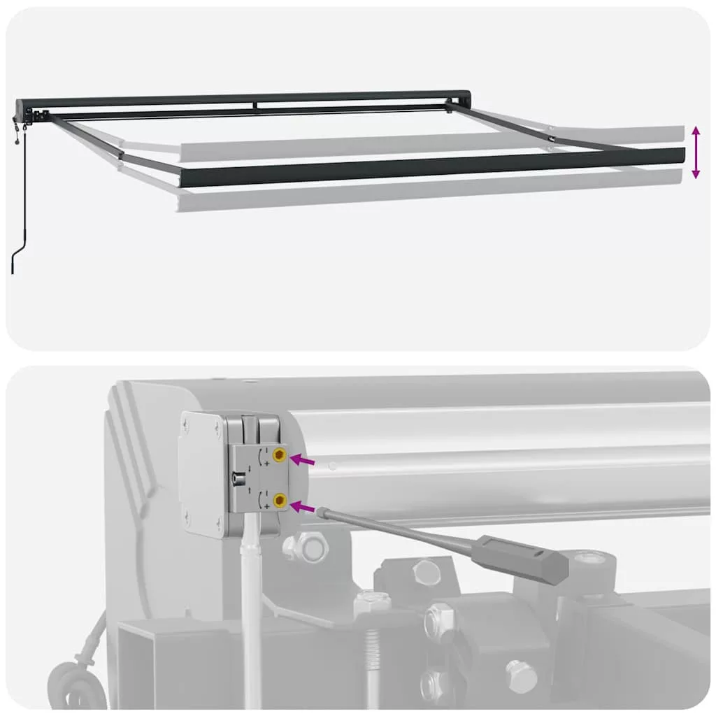 Teremtsen kellemes és hűvös helyet a teraszon, és védje meg magát az UV-sugaraktól ezzel a kihúzható napellenzővel! Tartós anyag: A napellenző váza porszórt alumíniumból készült, amely robusztus és tartós. A PU felületkezeléssel ellátott szövet UV-álló. Óvja családját vagy vendégeit az UV-sugárzástól és a vakító napfénytől.Automata funkció: A napellenzőt a mellékelt távirányítóval könnyedén kinyithatja és visszahúzhatja.Könnyen kezelhető: A szög és a magasság állítható, hogy megfeleljen az Ön különböző igényeinek. A napellenző a hosszú hajtókarral zökkenőmentesen nyitható és visszahúzható.Széleskörű alkalmazás: Ez a kihúzható napellenző egyszerű, stílusos kialakítású, amely jól illeszkedik otthoni vagy kereskedelmi környezetébe. Különféle helyekre alkalmas, például erkélyre, teraszra, udvarra, éttermekbe, kávézókba, üzletekbe stb. A gyermekeket felügyelni kell, hogy ne játsszanak a készülékkel. Tartsd távol a gyermekeket a szerelési területtől. Figyelem: Olvasd el alaposan az utasításokat a használat előtt, és tartsd meg későbbi hivatkozás céljából.