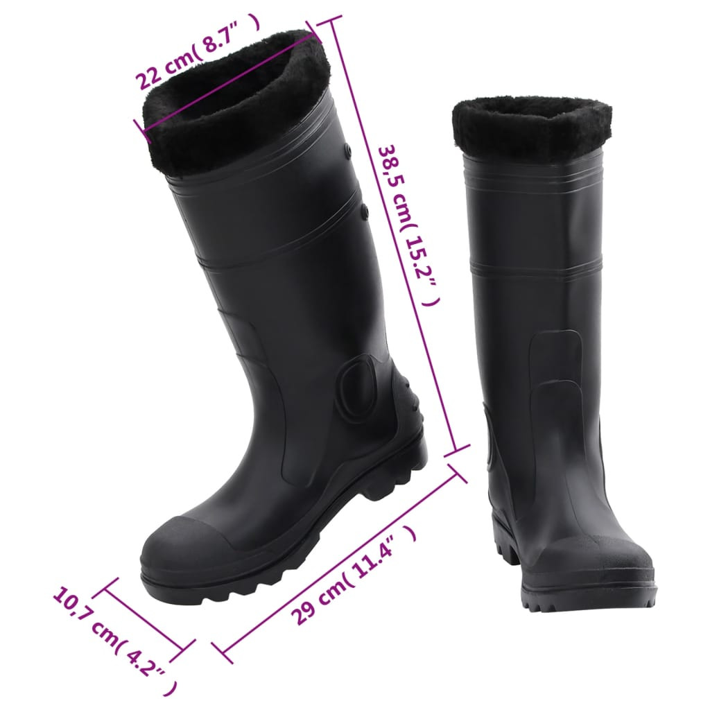 fekete PVC 42-es esőcsizma kivehető zoknival