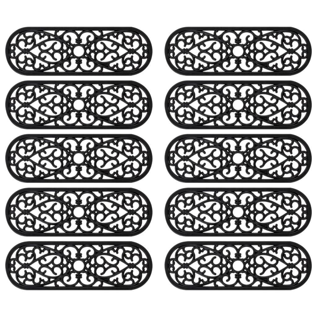 Lépjen biztonságosan a lépcsőn ezekkel az elegáns gumilépcsőfokokkal. Tartós anyag: A lépcsőfok borítása rugalmas, ütéscsillapító, kopásálló gumiból készült, amely biztosítja a tartósságot és a foltállóságot.Csúszásmentes: A gumilépcsőszőnyeg speciálisan a lépcsők fölé illeszkedik, és növeli a tapadást és a tapadást, hogy csúszásmentes járófelületet biztosítson.Könnyen tisztítható: Így a gumiból készült lépcsőszőnyeg könnyen lesöpörhető vagy lemosható a tisztításhoz.Dekoratív kialakítás: A gumi lépcsőfok külső oldalán vintage kovácsoltvas megjelenésű, amely segít, hogy otthona és kültéri tere stílusosnak tűnjön.Széles körű alkalmazások: A lépcsőfokburkolat alkalmas beltéri lépcsőkhöz, kültéri lépcsőkhöz és kereskedelmi lépcsőkhöz.
