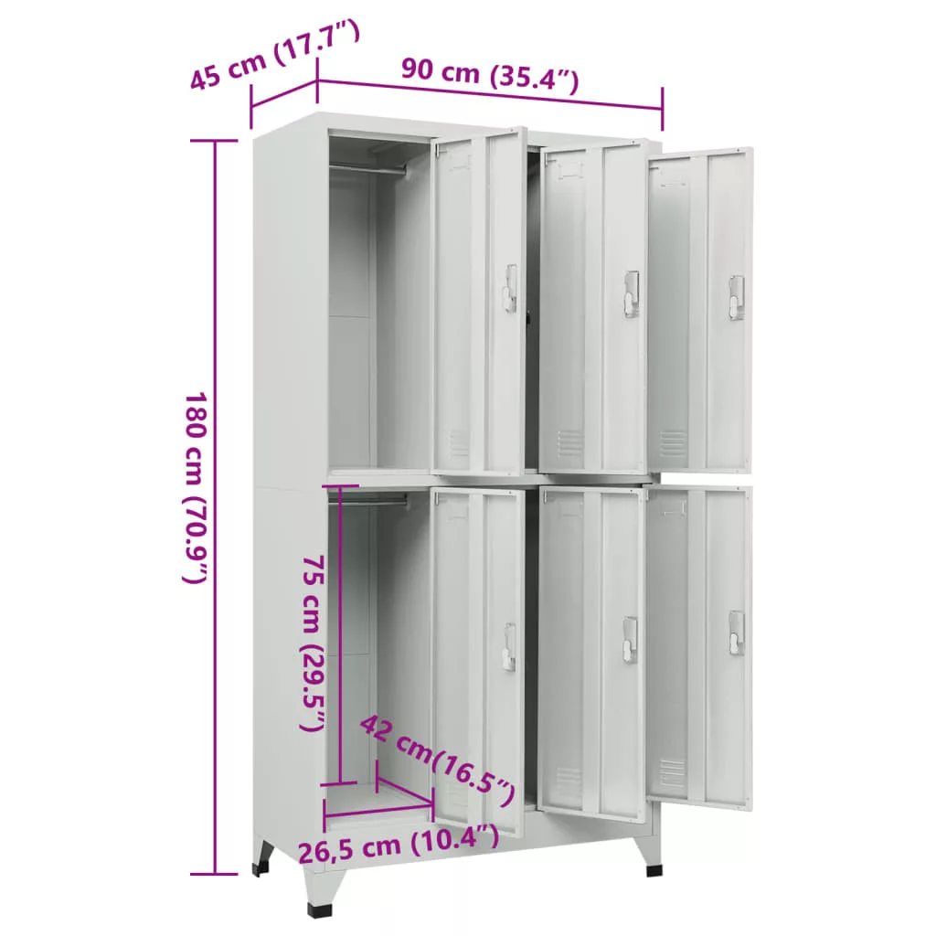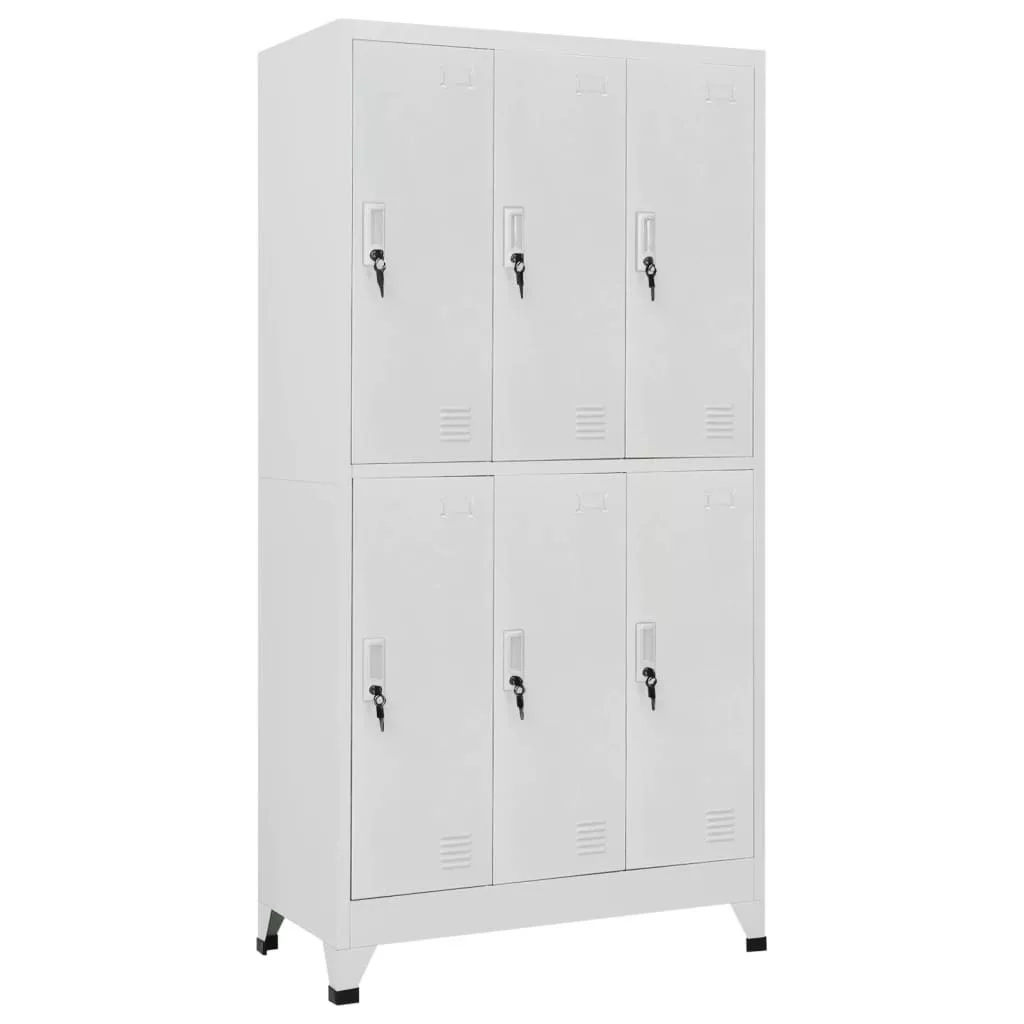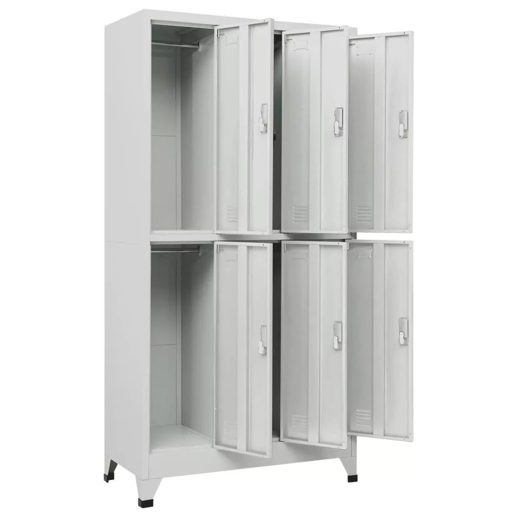Ez az öltözőszekrény nemcsak sportolók öltözőjébe vagy céges öltözőkbe ideális, hanem vagány, ipari hangulatot is kölcsönöz az irodának vagy iskolának. Ez a 6 különálló ajtós rekesszel rendelkező öltözőszekrény bőséges tárolóhelyet biztosít ruhák és egyéb személyes tárgyak biztonságos tárolásához. Minden rekeszben egy akasztó és egy névjegykártya tartó található. A műanyag lábak megakadályozzák, hogy a padló összekarcolódjon. Ez a zárható szekrény kiváló minőségű acélból készült, így tartós és könnyen tisztítható. Könnyen összeszerelhető.