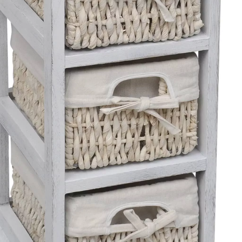 Ez a kiváló minőségű fából készült, lenyűgöző tárolóállvány egyszerű, de stílusos kialakítással rendelkezik. Nem csak a dolgai számára nyújt tárolóhelyet, hanem a szoba dekorációját is feldobja. 3 szőtt kosárával ez a fa tároló bőven helyet kínál értékeinek megőrzésére, miközben szobájának country stílust kölcsönöz. A fa tárolónk minden bizonnyal kedvenc bútordarabja lesz otthonában.