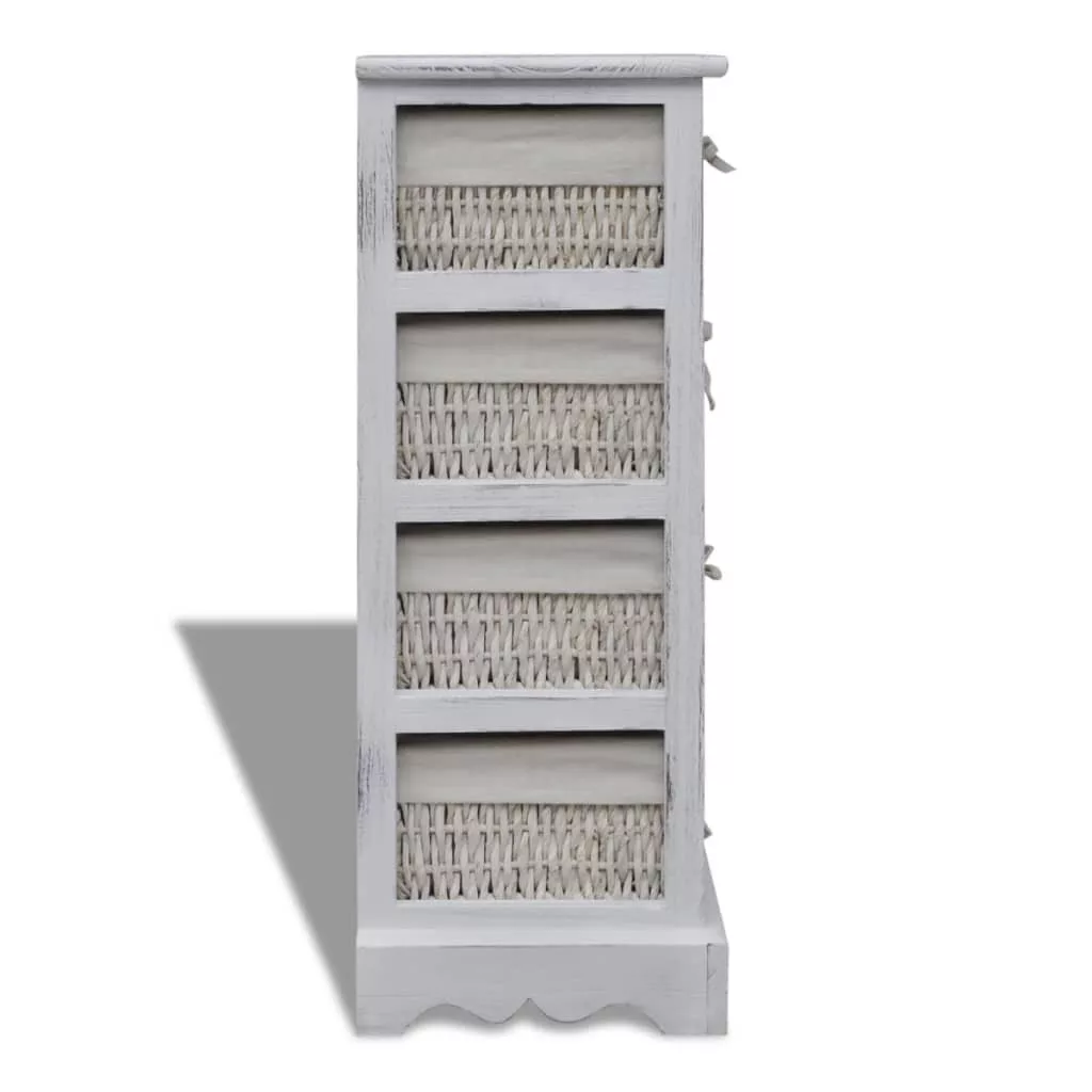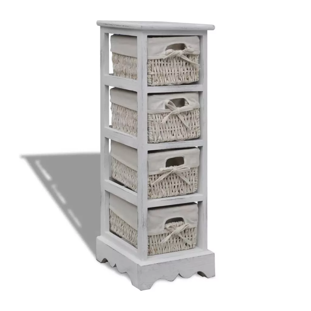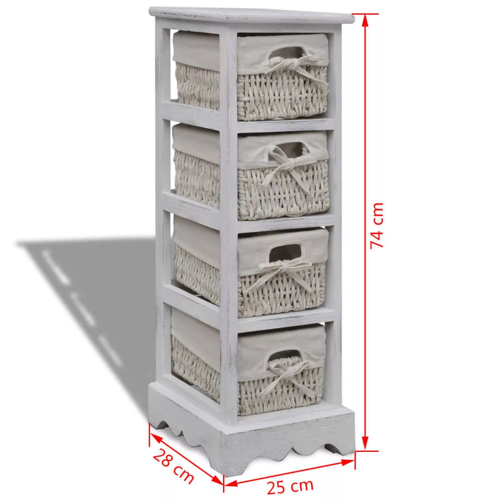 fehér fa tárolóállvány 4 szőtt kosárral