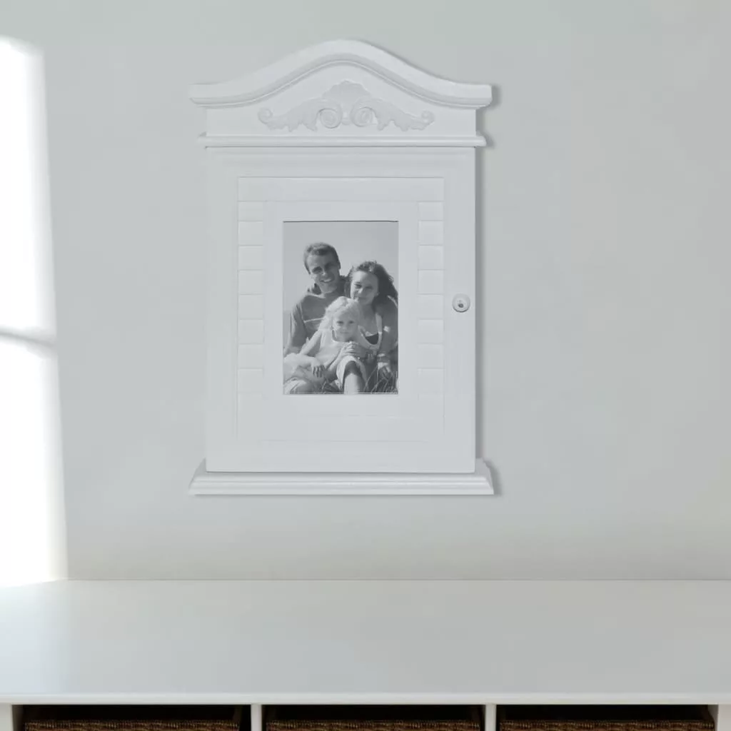 fehér kulcsos szekrény képkerettel