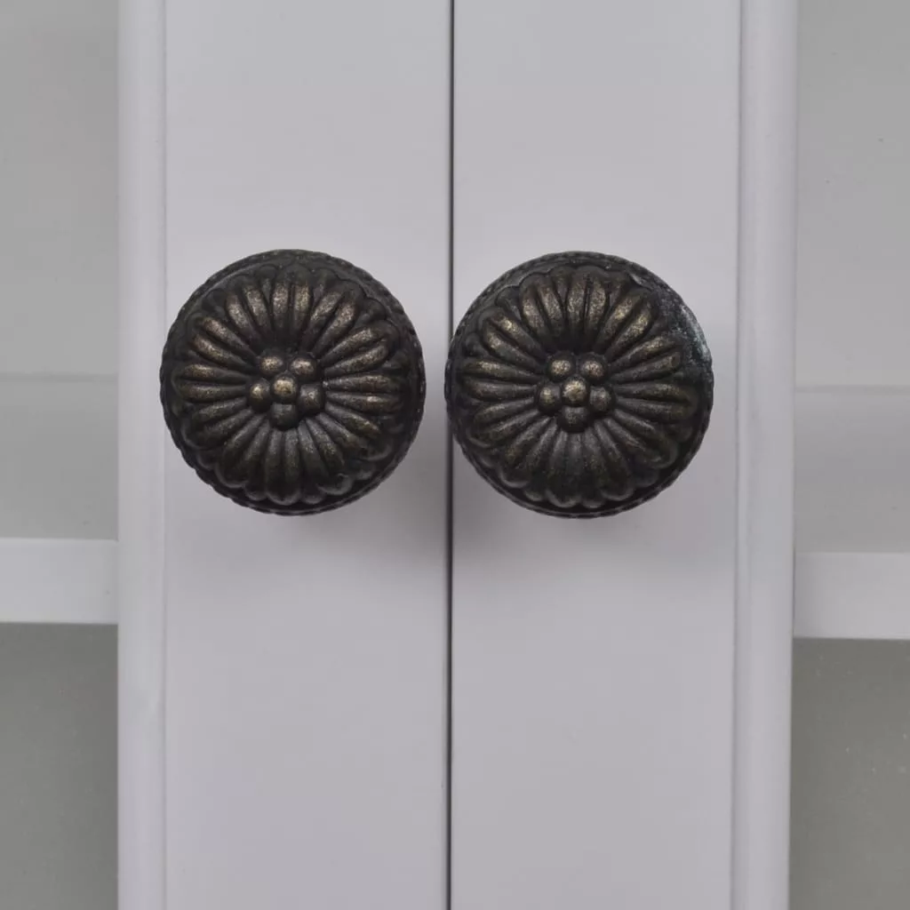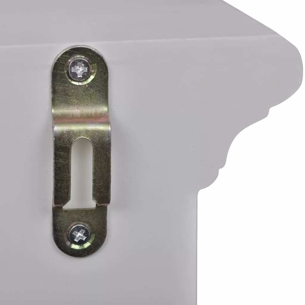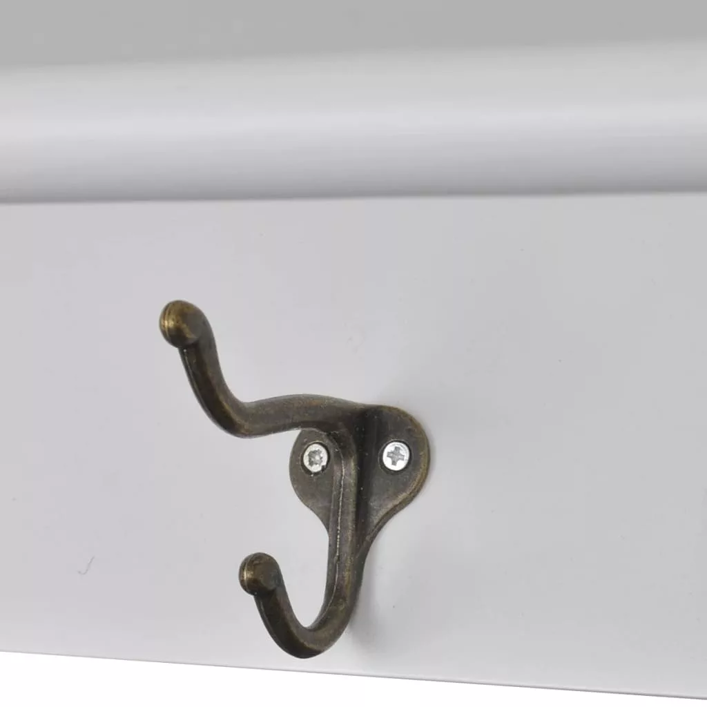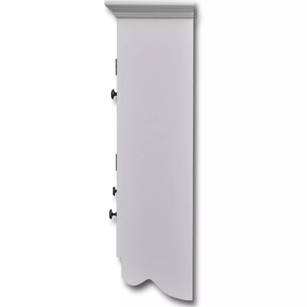 Ez az elegáns, antik megjelenésű fa faliszekrény bőséges tárolóhelyet biztosít a konyhában, és segít a dolgok rendezésében. A szekrény két fiókkal és két polccal rendelkezik, így könnyen tárolhat gabonaféléket, fűszereket, konzerveket és még sok mást. 2 üvegajtóval és 2 könnyen nyitható fiókkal lett felszerelve, így gyorsan beszerezheti a szükséges dolgokat. A horgok és szegek bögrékhez vagy törlőkhöz használhatók. Kiváló minőségű fából készült, ez a szekrény úgy készült, hogy ellenálljon a nedves környezetnek. A fehérre festett felület nedves ruhával könnyedén tisztítható.