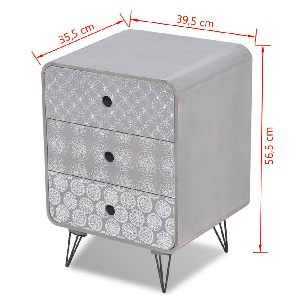 Ez a 3 fiókos kisszekrény visszafogott, de stílusos kialakítású, elegáns dekoratív mintákkal, éjjeliszekrényként vagy telefonállványként is használható. Ez a kisszekrény praktikus éshálószobája, nappalija vagy társalgója kiemelkedően dekoratív kiegészítője lehet. Míg a nagy asztallap ideális arra, hogy elhelyezze rajta TV-jét, routereket, szórakoztató elektronikai berendezéseket vagy dísztárgyakat, képkereteket vagy akár cserepes növényeket is, addig a három fiók bőséges helyet kínál kisebb tárgyak, például kulcsok, jegyzettömbök, tollak és egyéb apróságok elérhető közelségben való tárolásához. A kiváló minőségű MDF anyagnak és az erős acél tűlábaknak köszönhetően ez a kisszekrény nagyon erős és tartós. Összeszerelése rendkívül könnyű.