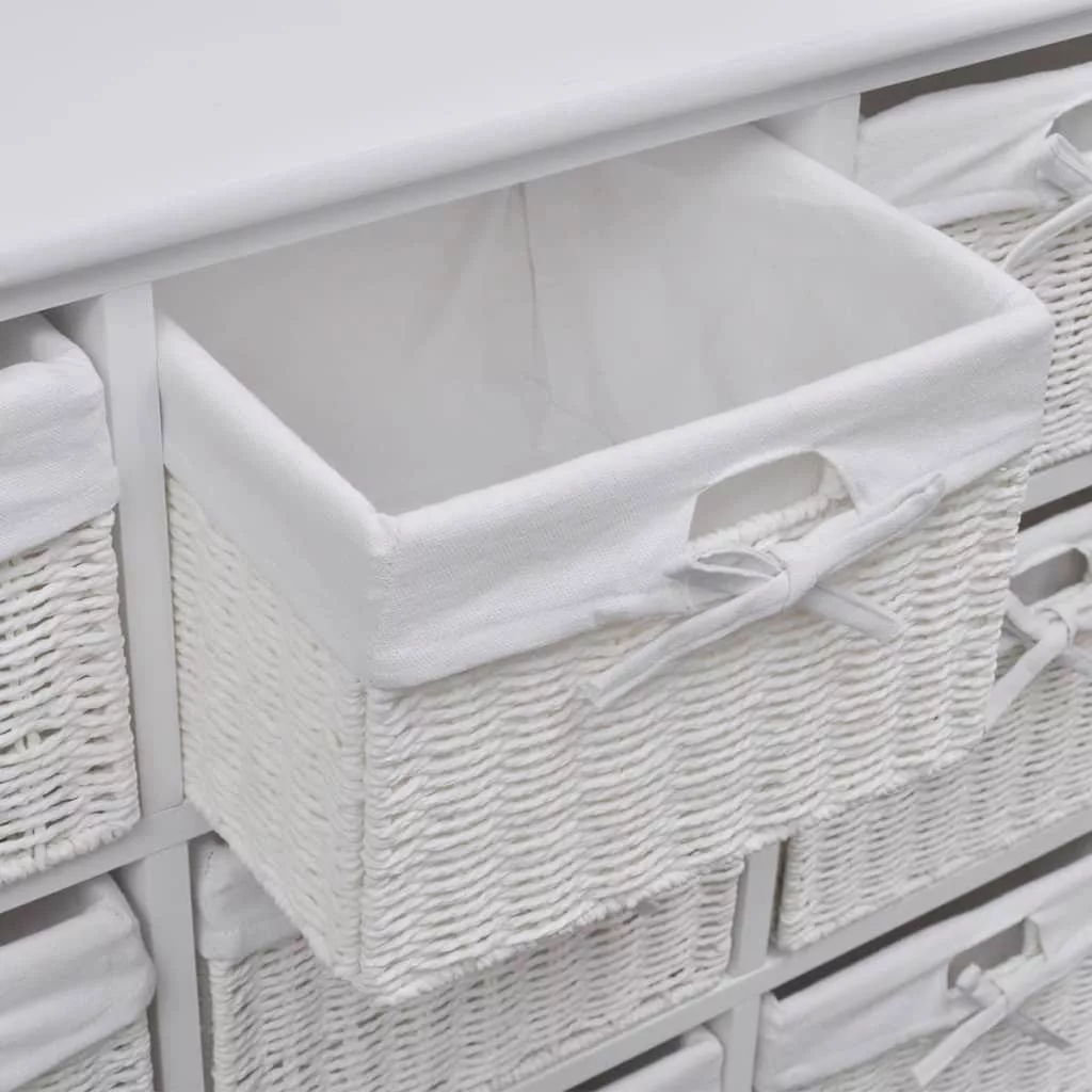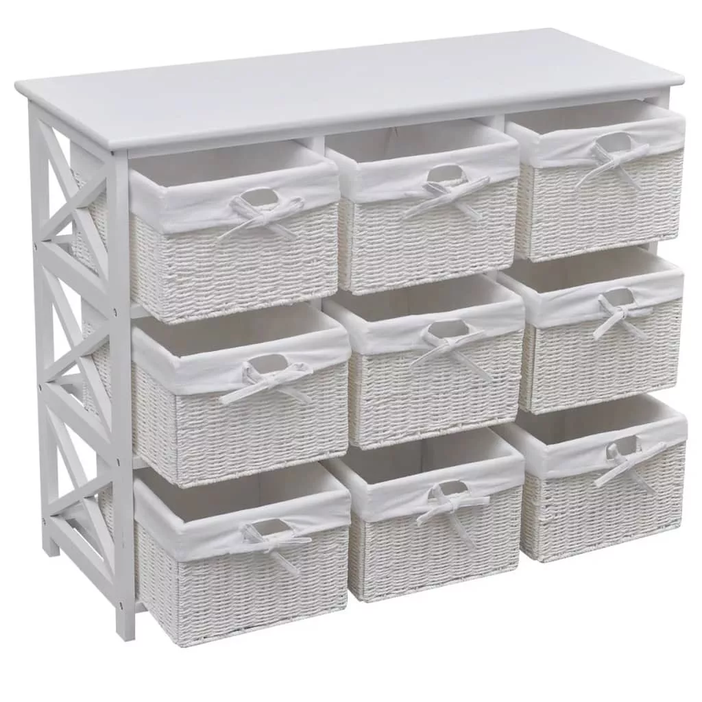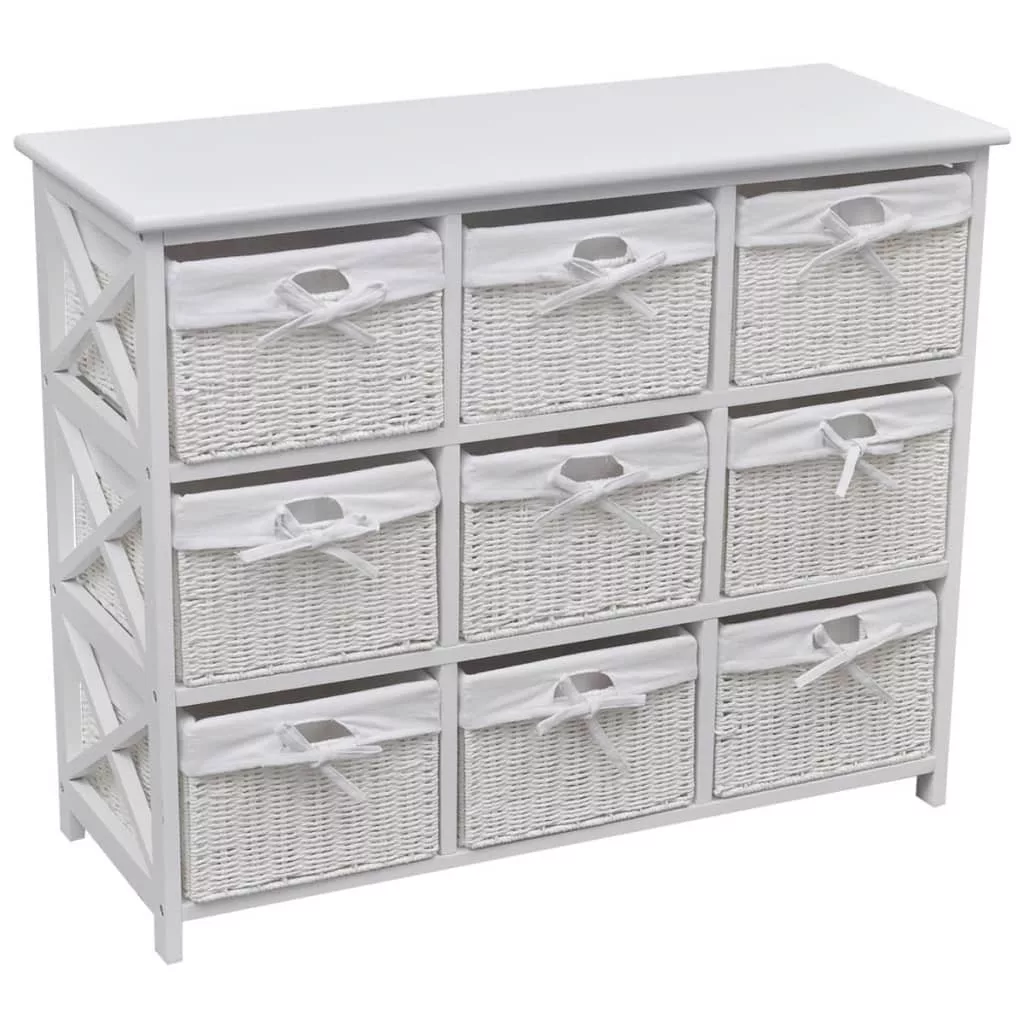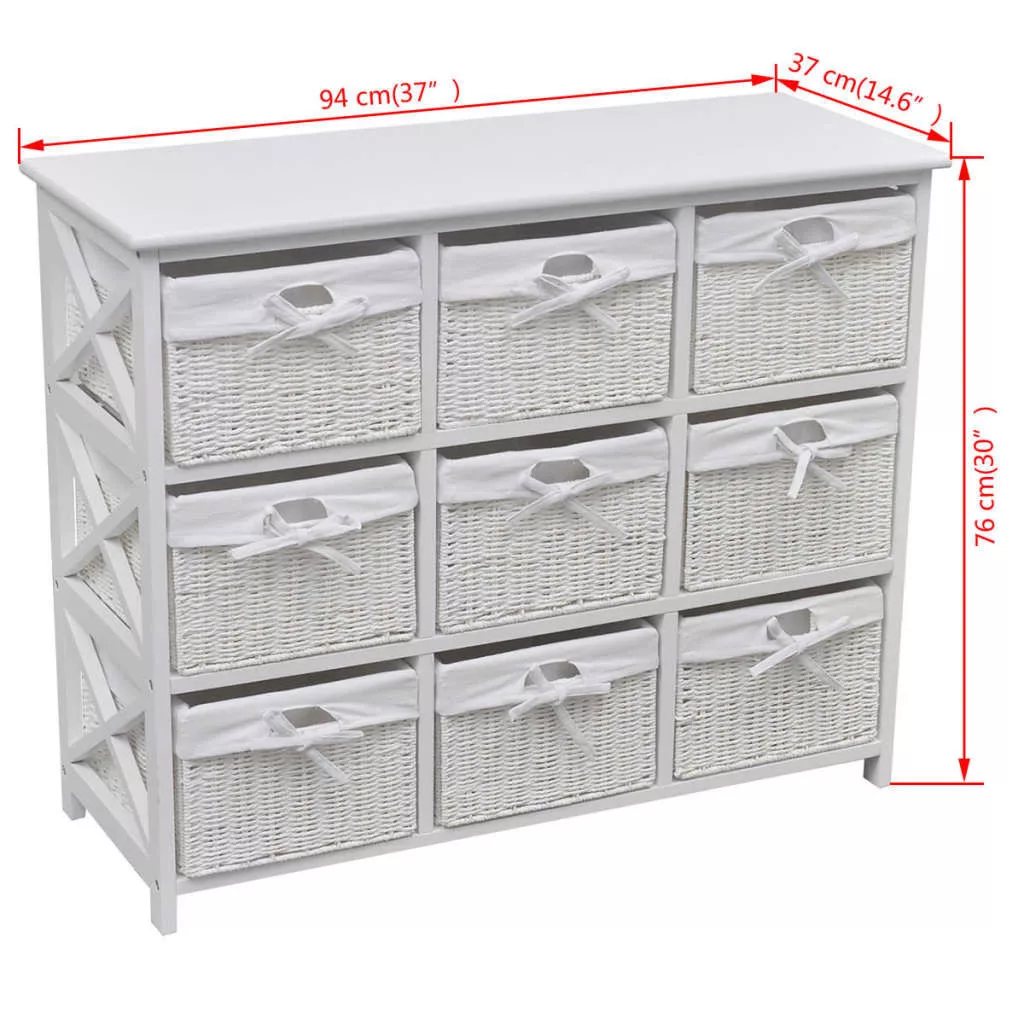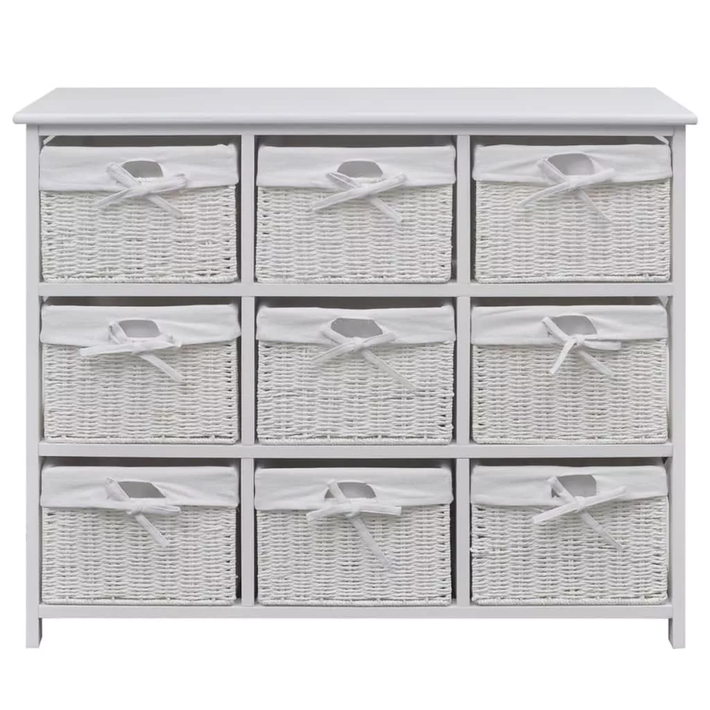 Ez a kiváló minőségű anyagból készült, lenyűgöző szekrény egyszerű, de stílusos kialakítással rendelkezik. Nem csak a holmijait tartja rendezve, hanem a szoba dekorációját is javítja. Ez a tárolóegység 9 db fonott kosárral lett ellátva, melyek mindegyike mosható szövetbélést kapott. Ez a bútordarab fehér festékbevonatot kapott, így strapabíró és könnyen tisztítható. Ez a gyönyörű, sokoldalú szekrény tökéletes tárolási megoldást kínál otthona bármely helyiségébe.