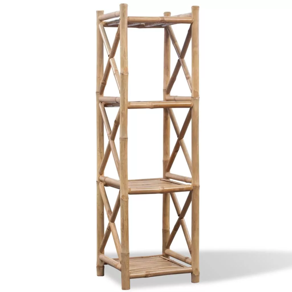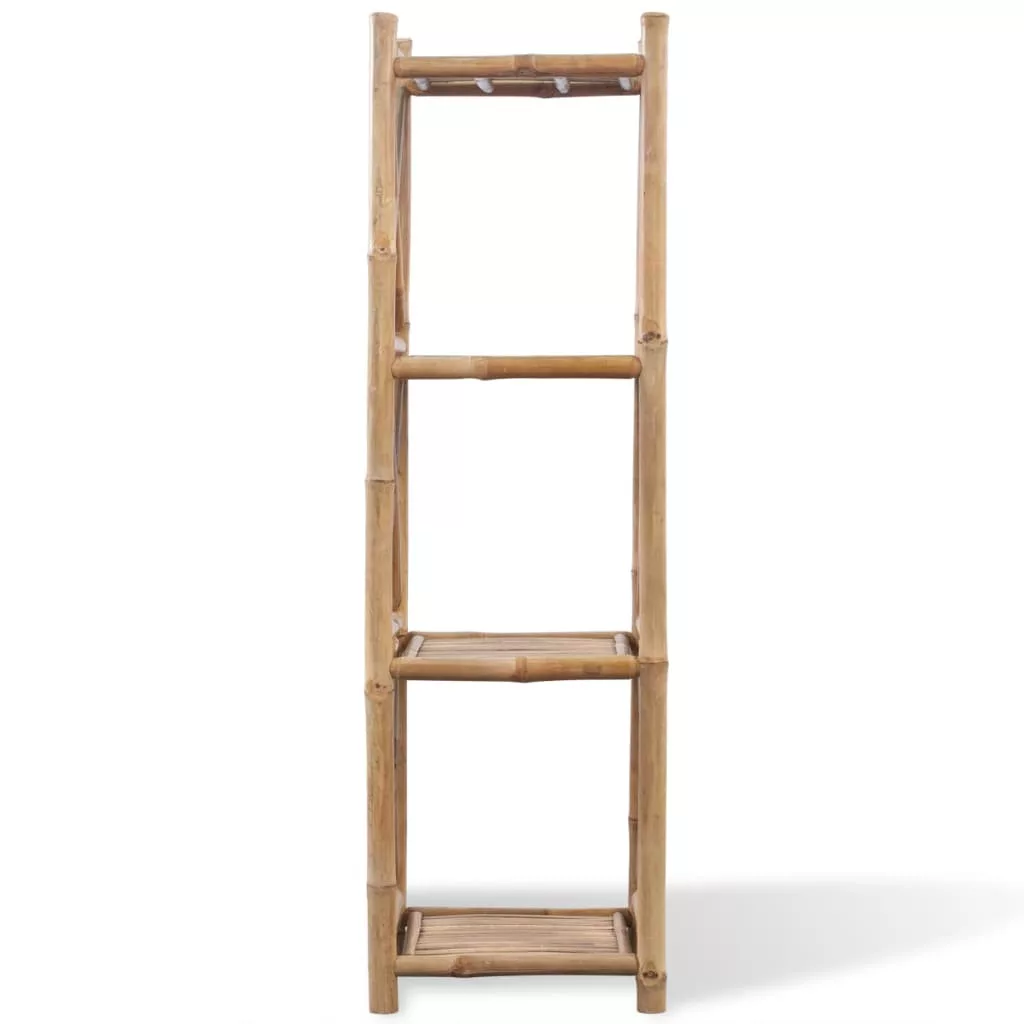 Ez a 4 szintes bambuszpolc használható a fürdőszobában törölközőtartóként, a nappaliban könyvespolcként, vagy a teraszon növénytartóként. A kompakt és egyszerű kialakításnak köszönhetően ideális kisebb helyiségekbe. Az autentikus bambusz színárnyalat trópusi bájt kölcsönöz otthonának. A 4 szintes polc kiváló minőségű bambuszból készült, amelyet kiváló időjárásállóság és tartósság jellemez. Nedves ruhával könnyen tisztítható.