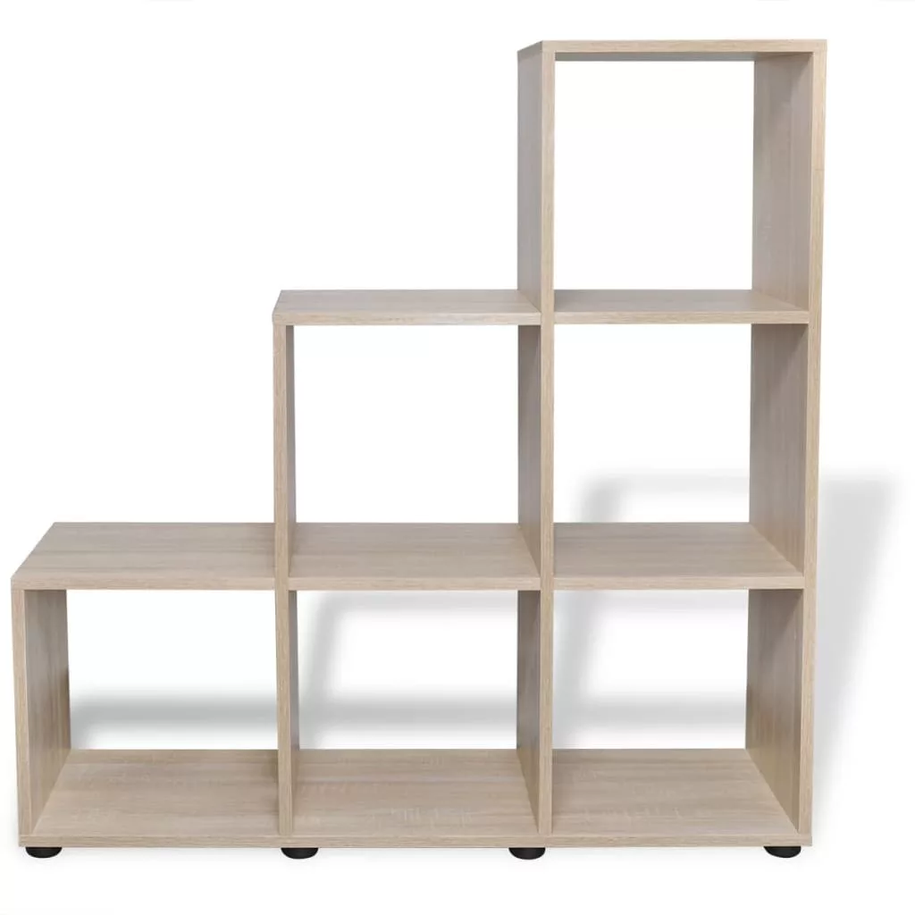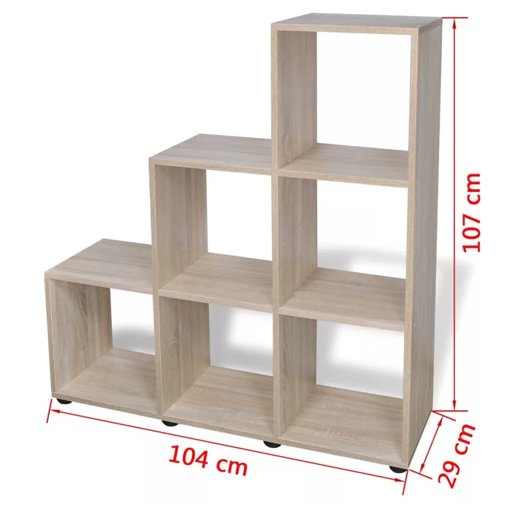 Ez a könyvespolc egyedi és funkcionális, lépcsőszerű kialakításával bármely helyiség középpontja lesz. Ez a megkapó könyvespolc 6 nyitott tárolórésszel rendelkezik, melyek ideális helyet kínálnak különböző tárgyak, például könyvek, gyűjtemények, fényképek, díjak vagy cserepes növények tárolásához. A polc kiváló minőségű anyagokból készült, így rendkívül strapabíró és időtálló. A szállítmány az összeszereléshez szükséges tartozékokat is tartalmazza. Rendkívül könnyen összeszerelhető.