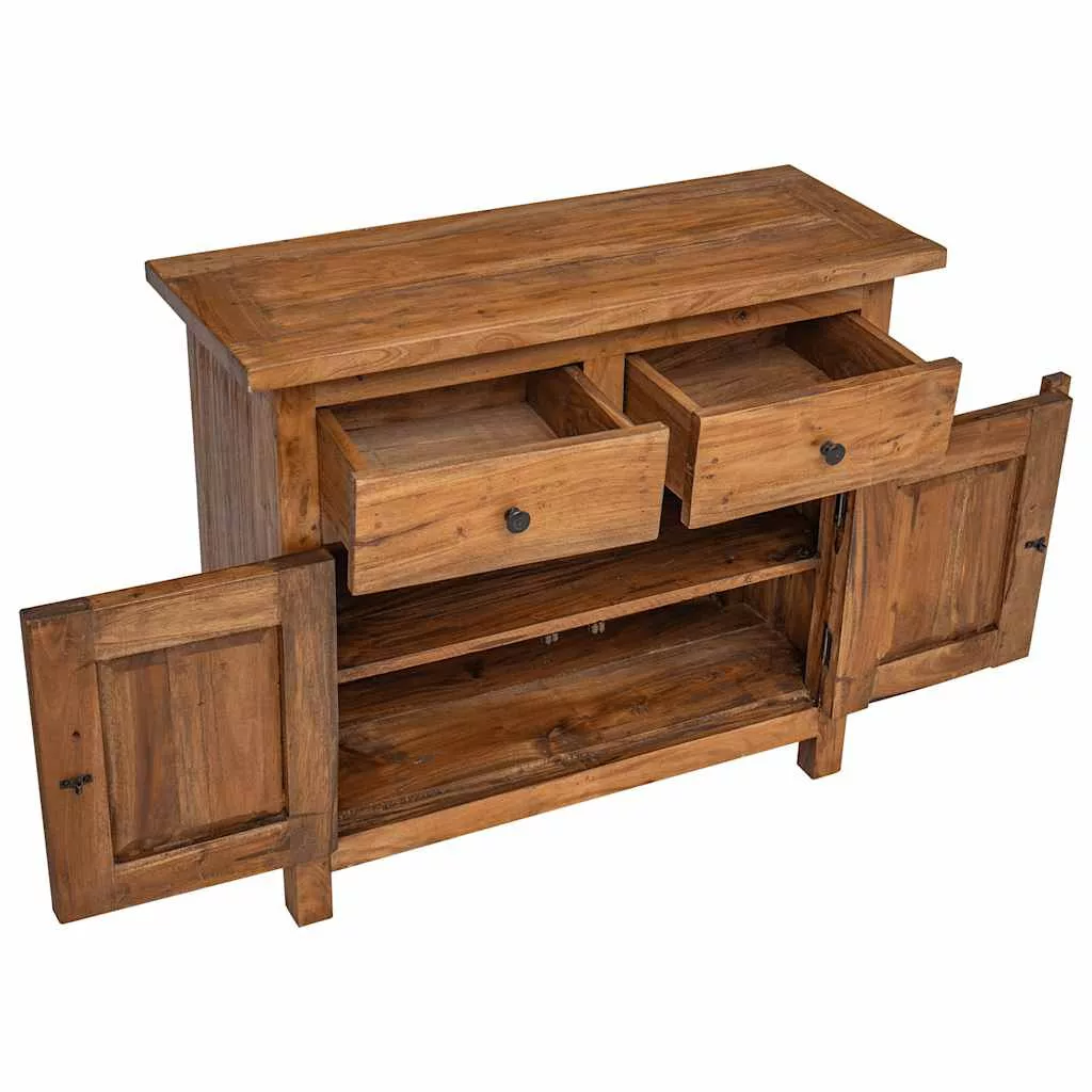 Ez a komód rusztikus bájt kölcsönöz otthona dekorációjának. Tömör, újrahasznosított fából készült, a kopott stílus minden egyes darabnak egyedi megjelenést kölcsönöznek, hozzájárulva látványos vintage megjelenéséhez. 2 fiókkal és egy polcos, 2 ajtós szekrénnyel rendelkezik. Robusztus és stabil: Ez a tömör fa komód rendkívül tartós és stabil. A mahagóni egy trópusi keményfa, amely szépségével, tartósságával, és színével tűnik ki. A különleges kézműves munkának köszönhetően ez a termék vintage, hangulatos, és hiteles megjelenéssel rendelkezik.Bőséges tárolóhely: A 2 fiók és a polcos szekrény bőséges tárolóhelyet biztosít a különböző mindennapi kellékek rendezett és könnyen elérhető tárolásához.Megjelenítő funkció: A masszív felülete ideális képkeretek, vázák, gyümölcskosarak, vagy egyéb dísztárgyak elhelyezésére. Praktikus ajtók: Az ajtók pormentesen és kevésbé látható helyen tartják holmijait. Vintage stílus: Ez a fa kisszekrény a legnagyobb gondossággal készült kézzel. Minden bútordarab egyedi, és kissé különbözik a többitől. A kopottság nosztalgikus megjelenést kölcsönöz és tovább növeli egyediségét. Megjegyzés:A színe és erezete darabonként változhat, így minden bútordarab egyedi, és kissé eltér a többitől. A kiszállítás véletlenszerűen történik, biztosítva terméke exkluzivitását és egyediségét.