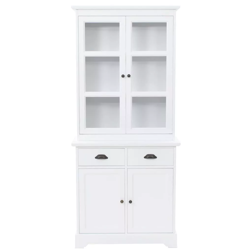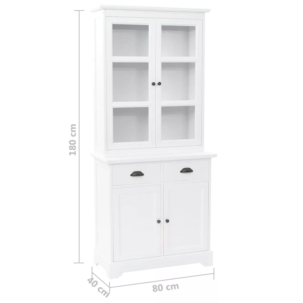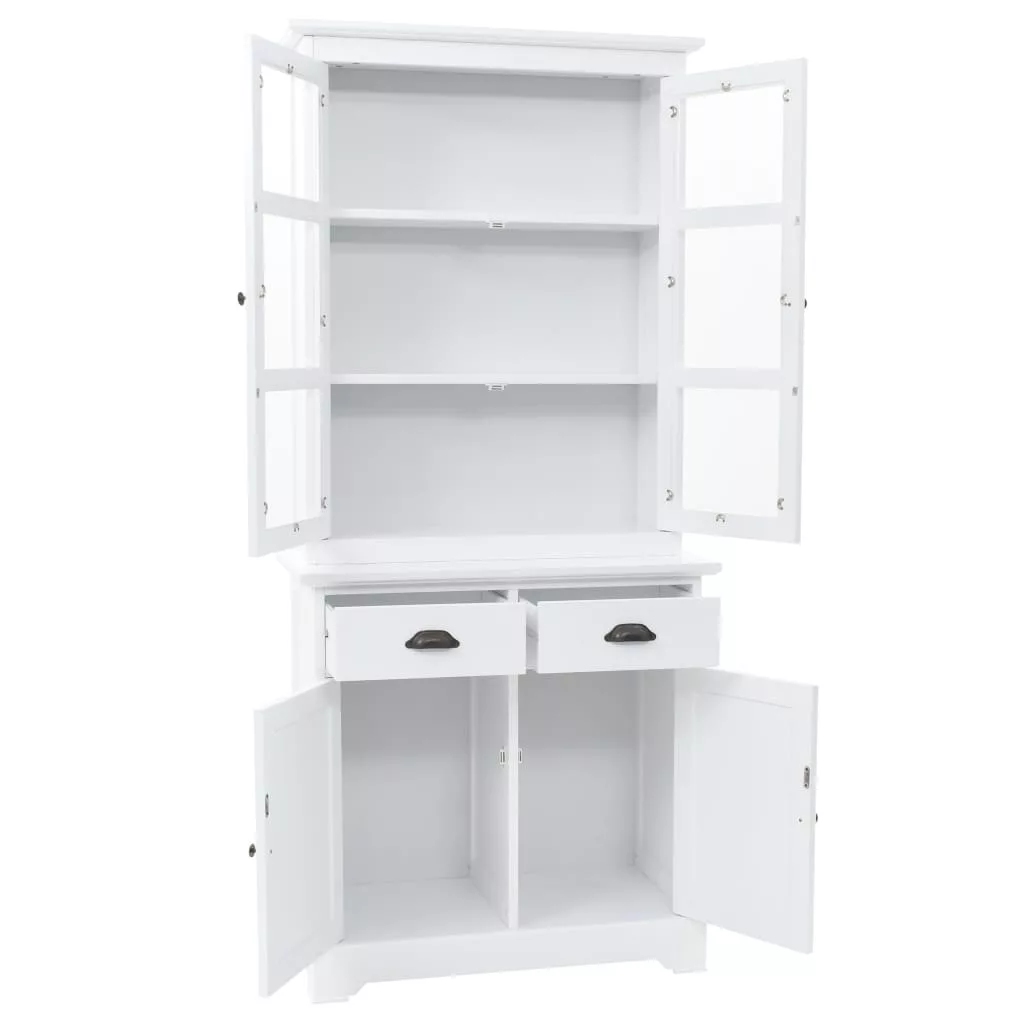 Ez a kredenc nagyszerű kiegészítője lesz nappalijának sikkes dizájnjának és letisztult fehér felületének köszönhetően. Akár konyhaszekrényként vagy komódként használható. A vitrines szekrény MDF-ből készült, az ajtókat és a fiókokat pedig fémfogantyúk díszítik. A felső három tárolórekeszbe helyezhet például poharakat vagy étkészletet, de használható akár könyvek, magazinok, cédék, iratok stb. tárolására. A műanyagajtó lehetővé teszi, hogy a tárgyak láthatóak legyenek, mégse porosodjanak. A két fiók és a két alsó tárolórekesz bőséges helyet kínálnak a különböző személyes holmik számára. Könnyen összeszerelhető.