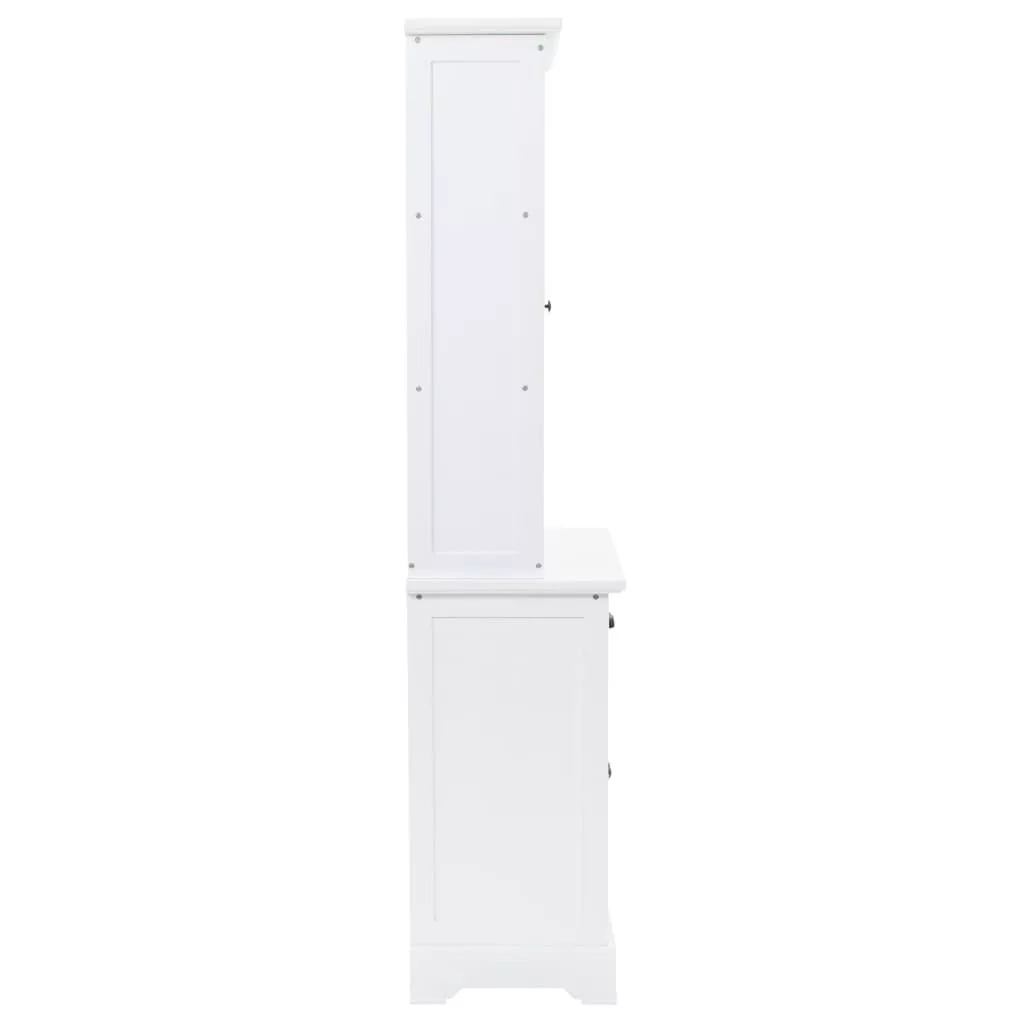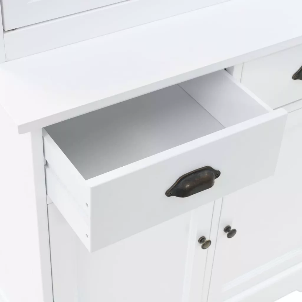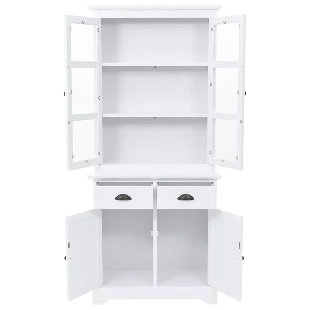 Ez a kredenc nagyszerű kiegészítője lesz nappalijának sikkes dizájnjának és letisztult fehér felületének köszönhetően. Akár konyhaszekrényként vagy komódként használható. A vitrines szekrény MDF-ből készült, az ajtókat és a fiókokat pedig fémfogantyúk díszítik. A felső három tárolórekeszbe helyezhet például poharakat vagy étkészletet, de használható akár könyvek, magazinok, cédék, iratok stb. tárolására. A műanyagajtó lehetővé teszi, hogy a tárgyak láthatóak legyenek, mégse porosodjanak. A két fiók és a két alsó tárolórekesz bőséges helyet kínálnak a különböző személyes holmik számára. Könnyen összeszerelhető.