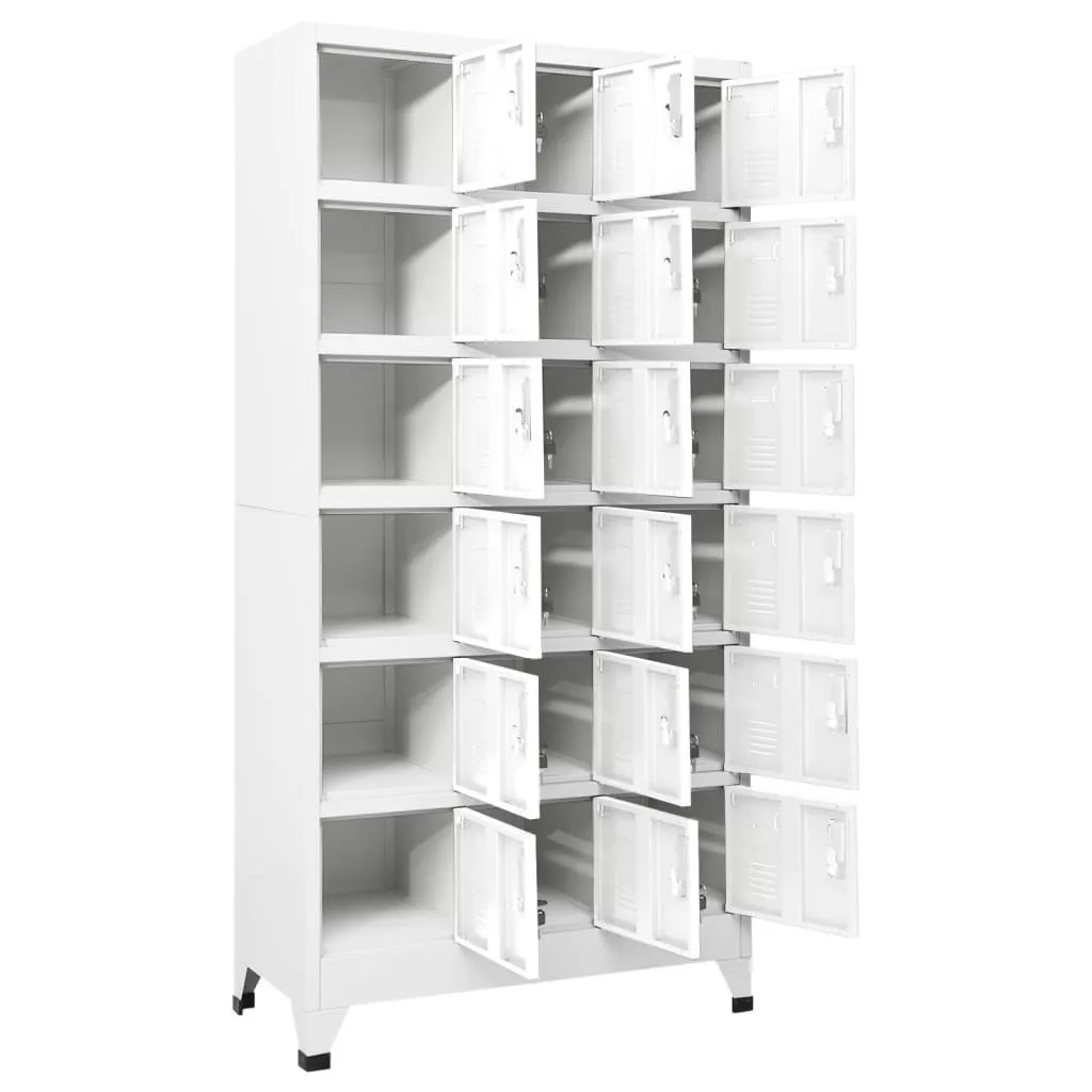 Ez az öltözőszekrény ideális edzőtermi öltözőkhöz vagy céges öltözőkhöz. Ez a zárható ajtókkal és 18 rekesszel rendelkező szekrény bőséges tárolóhelyet biztosít ruhák és egyéb személyes tárgyak biztonságos tárolásához. Minden ajtó névjegykártya-tartóval és szellőzőnyílással rendelkezik. Ez a szekrény fémlemezből készült, így tartós és könnyen tisztítható. Könnyen összeszerelhető.