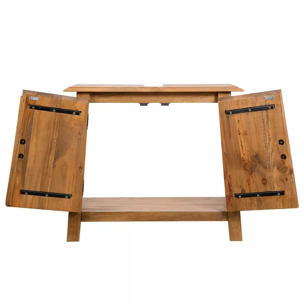 Ez a retró stílusú pipereszekrény rusztikus bájjal árasztja el fürdőszobáját. A szekrény kialakításának köszönhetően eltakarja a vízvezetékeket. Ez a masszív, stabil és időtálló pipereszekrény tömör újrahasznosított fenyőfából készült a lehető legnagyobb odafigyeléssel, a kézműves munka pedig kiemeli látványos vintage stílusát. Fontos megjegyzés: A fa színe és erezete darabonként változik, a szekrényeken található csomók pedig karaktert és egyediséget kölcsönöznek, így minden egyes darabnak külön története és egyedi esztétikai vonzereje van; a szállítás véletlenszerűen történik, így biztosítva a termék exkluzivitását és egyediségét.