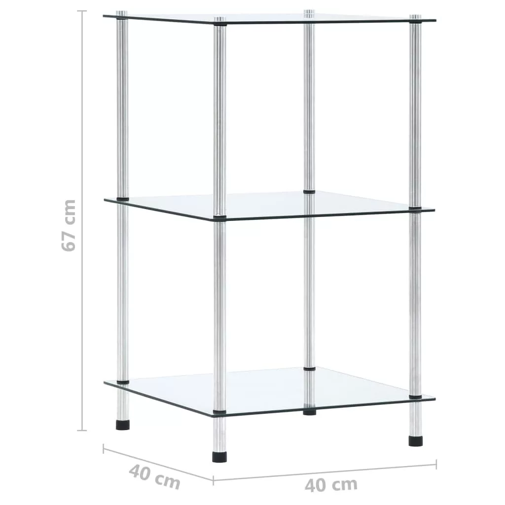 3 szintes átlátszó edzett üveg polc 40 x 40 x 67 cm