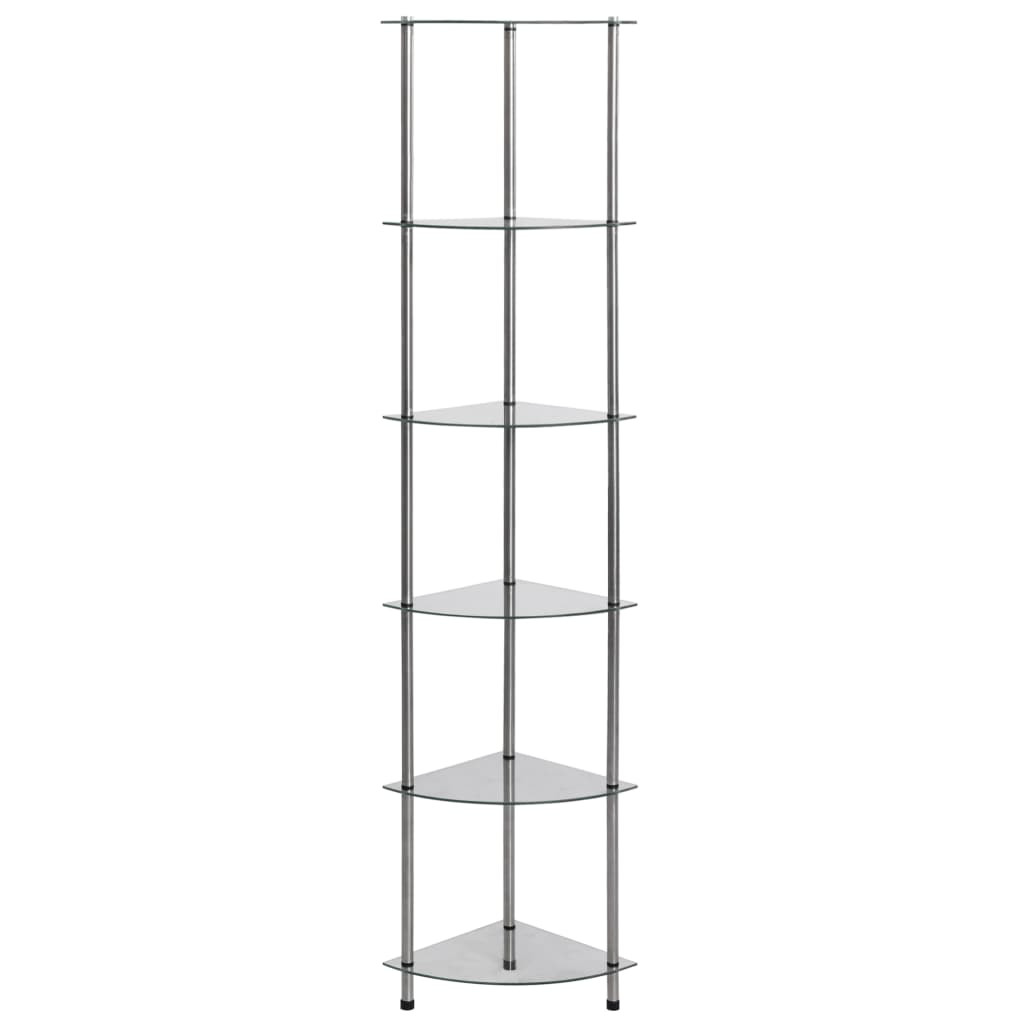 Vigyen otthonába egy kis stílust ezzel a modern és praktikus üvegpolccal! Ez a vitrin hat szinttel rendelkezik a bőséges tárhely érdekében, így rendkívül praktikus lesz a nappaliban vagy az irodában. Használható dísztárgyak, képkeretek, cserepes növények megjelenítésére, vagy akár a fürdőszobában különféle kellékek rendezett tárolására. Vastag edzett üvegből és rozsdamentes acélból készült, tehát ez a polc igen erős és biztonságos. Emellett a sima felülete egyszerűen tisztítható egy nedves törlőkendővel.