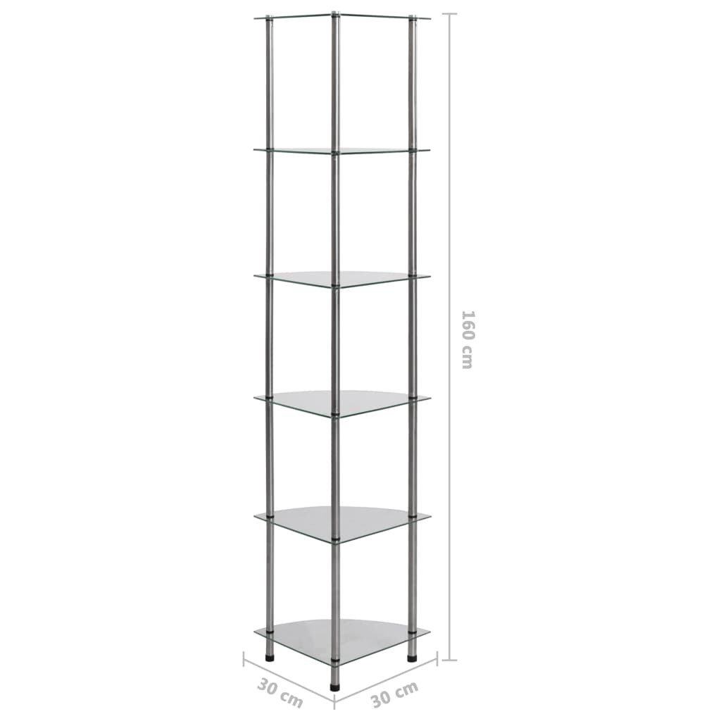 6 szintes átlátszó edzett üveg polc 30 x 30 x 160 cm