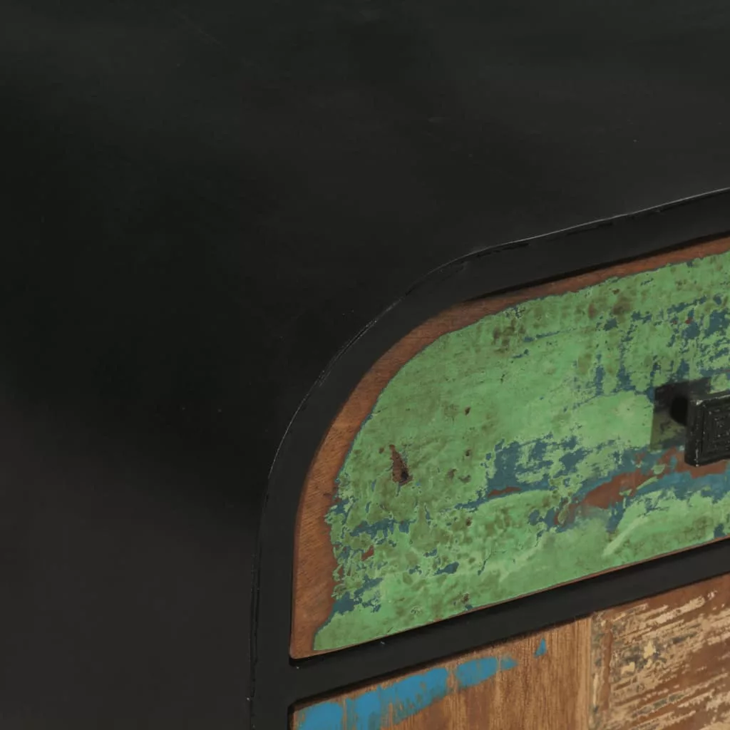 Ez az antik stílusú újrahasznosított fából készült tálaló négy fiókjával és négy tárolórekeszével bőséges tárolóhelyet kínál, és hozzájárul a rend fenntartásához. Ez a tárolószekrény újrahasznosított, tömör fából készült, aminek következtében a bútor felülete több fa jellegzetes vonásait viseli, mint pl.: mahagóni, tíkfa, keményfa, mangófa, akácfa, stb. Az újrahasznosított fa tömör, masszív, tartós és gyönyörű. Otthonában ez a bútor arról árulkodik, hogy Ön környezetkímélő és törődik a világ sorsával és a fenntartható fejlődéssel. Minden egyes bútordarab egyedi megjelenésű, és enyhén eltér társaitól. A kopottság jelei tovább növelik az egyediségét és nosztalgikus kisugárzást is kölcsönöznek a tálalónak. Ez a pohárszék teljes mértékben kézzel készült, így lenyűgöző, retró kinézete van. A készítési folyamat minden egyes lépése a lehető legnagyobb odafigyeléssel történt, legyen szó akár a csiszolásról, a festésről vagy a lakkozásról. Könnyen összeszerelhető. Figyelem: A bútordarab színe minden példány esetében más, így ezek a tálalóasztalok mind egyediek; a szállítás véletlenszerűen történik.