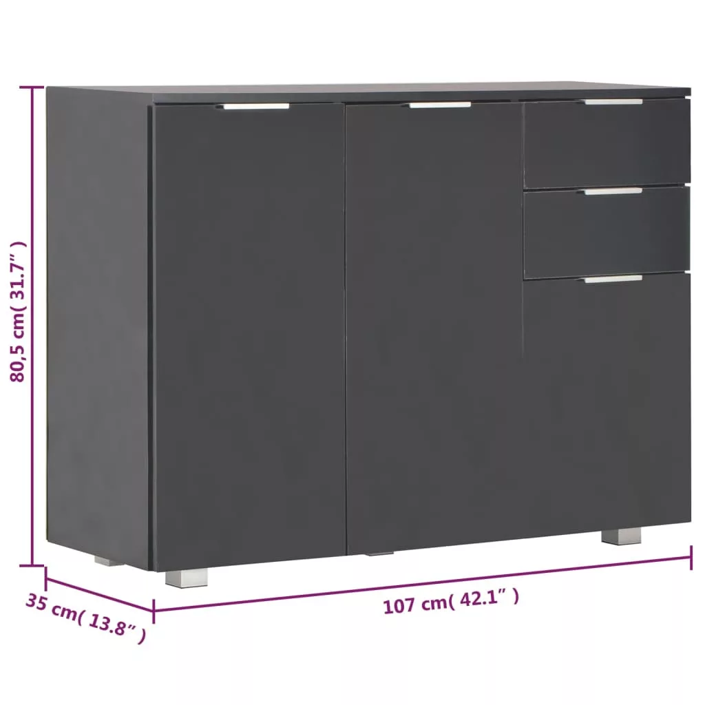 fekete magasfényű tálalószekrény 107x35x80,5 cm