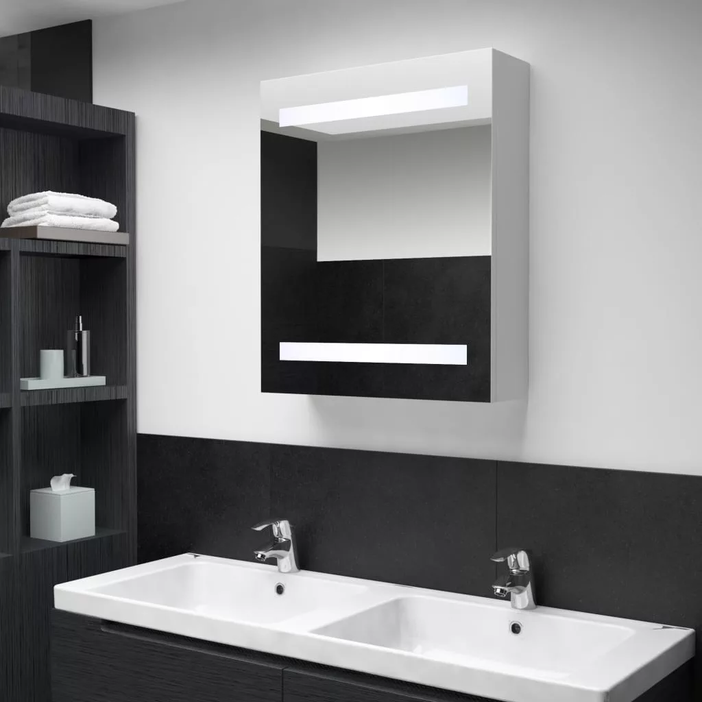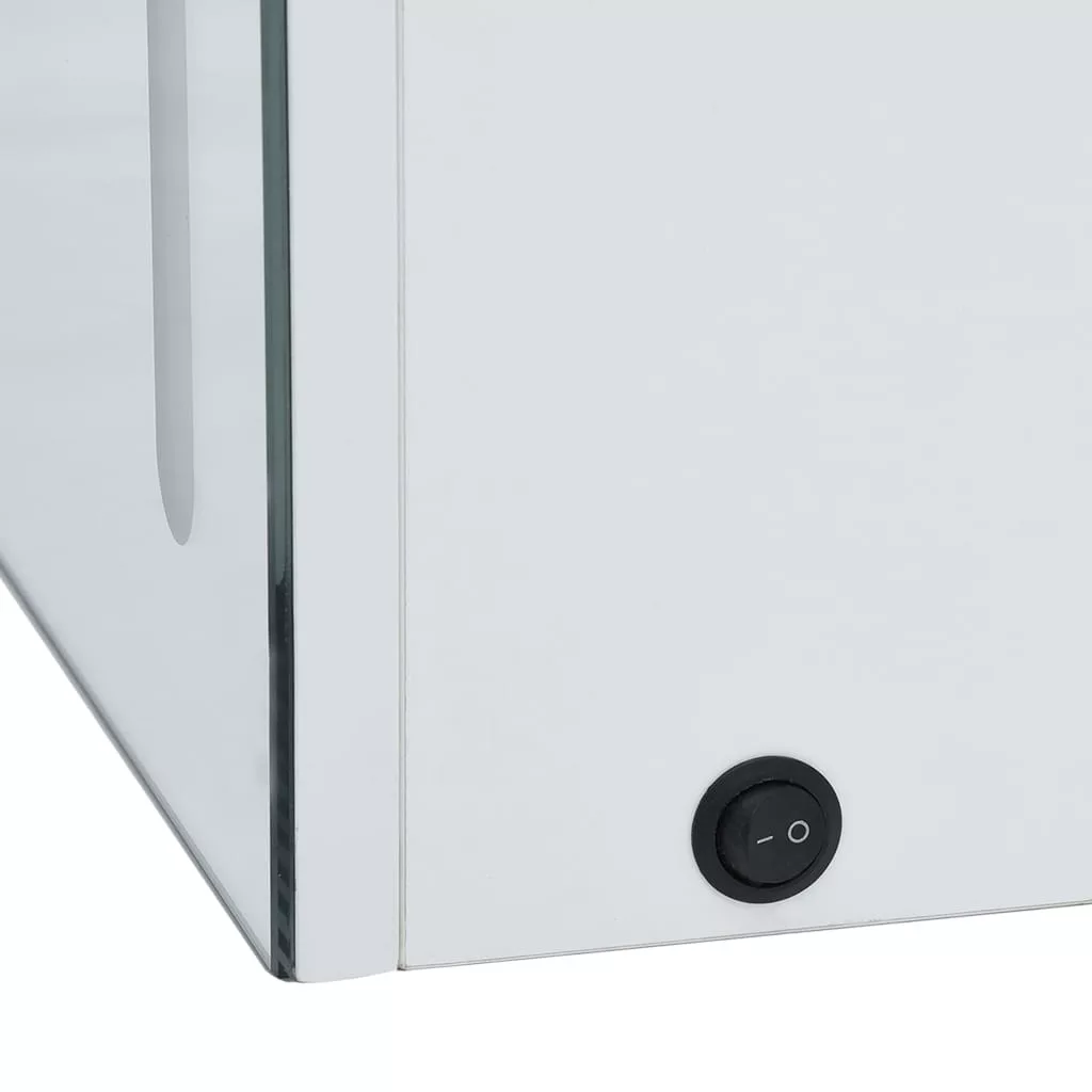 Csempésszen különleges bájt fürdőszobájába LED-es tükrös szekrényünkkel! A LED-fényekkel ellátott fali tükrös szekrényünk egy csipetnyi modern stílust és lágy világítást visz minden helyiségbe! Melamin bevonatú minőségi MDF lemezből készült, garantálva a hosszú távú használatot. A két energiatakarékos LED-es fénycsíknak köszönhetően a legmegfelelőbb fényben láthatja magát sminkeléshez, arc- és bőrápoláshoz, és nem csak a szoba szépül meg, de arca és mosolya is. Három polca bőséges helyet biztosít piperecikkei és kozmetikai kiegészítői tárolására. Az alsó gombbal egyszerű be- és kikapcsolni a világítást. A stílusos és praktikus szekrény biztosan különlegessé teszi szobáját! A szekrény könnyen felszerelhető a falra. Megjegyzés: A termék USB-csatlakozóval rendelkezik, ám a hitelesített 5 V-os USB áramforrást a csomag nem tartalmazza. Ne használja ezt az elemet, ha valamelyik alkatrésze eltört, elszakadt vagy hiányzik. Ez a termék DC 5V-ról működik, de a tanúsított 5V-os USB-tápforrást nem tartalmazza. A magasabb feszültség túlmelegedést okozhat, ami a készülék károsodását, valamint a túlmelegedés és a tűz esetleges kockázatát okozhatja.