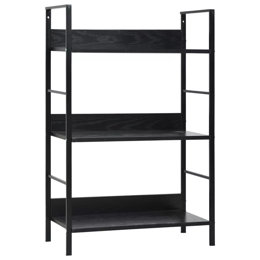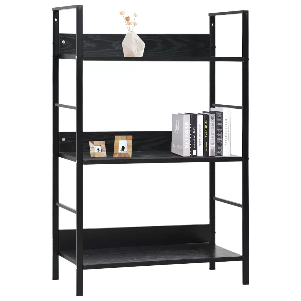 3 szintes fekete szerelt fa könyvespolc 60 x 27,6 x 90,5 cm