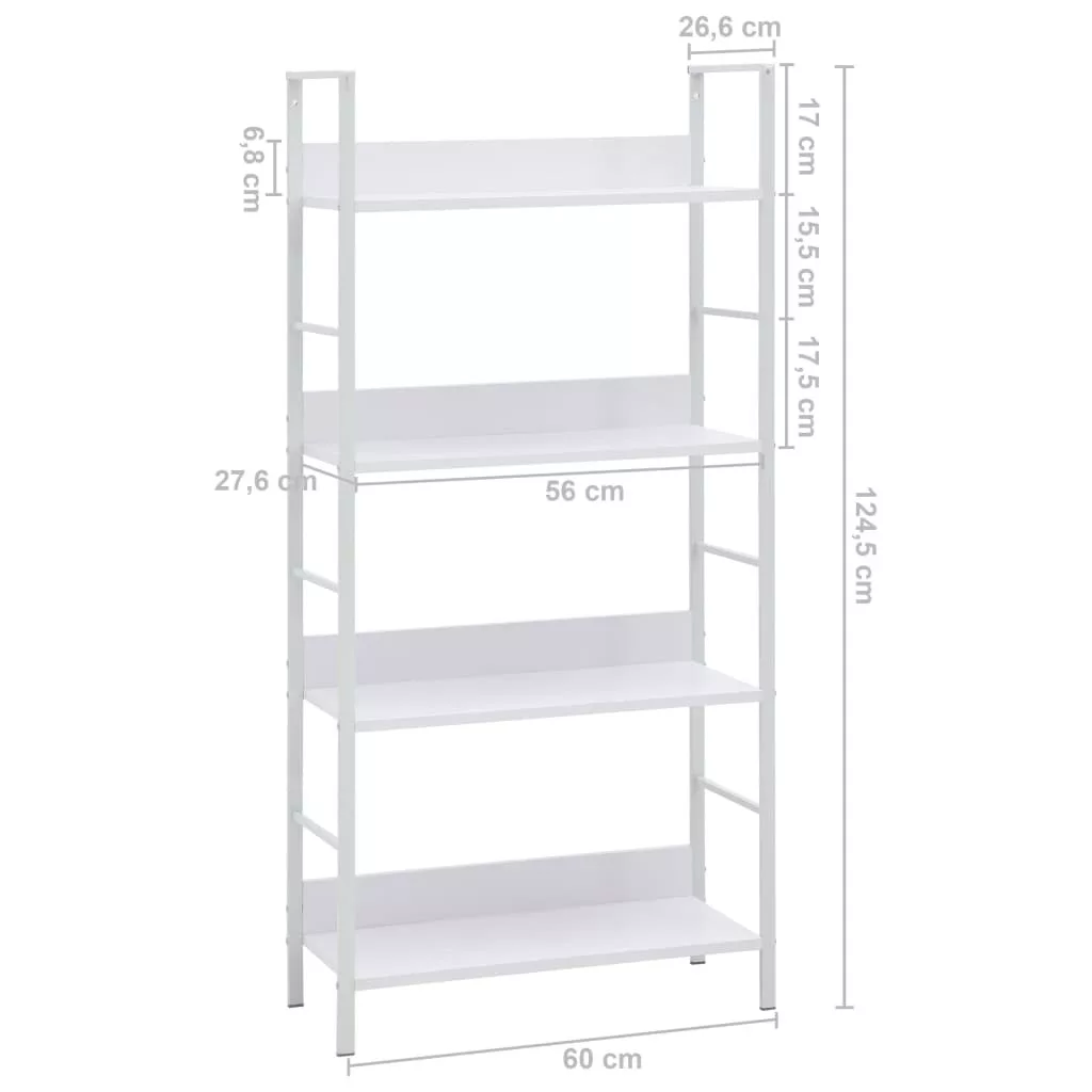 4 szintes fehér szerelt fa könyvespolc 60 x 27,6 x 124,5 cm