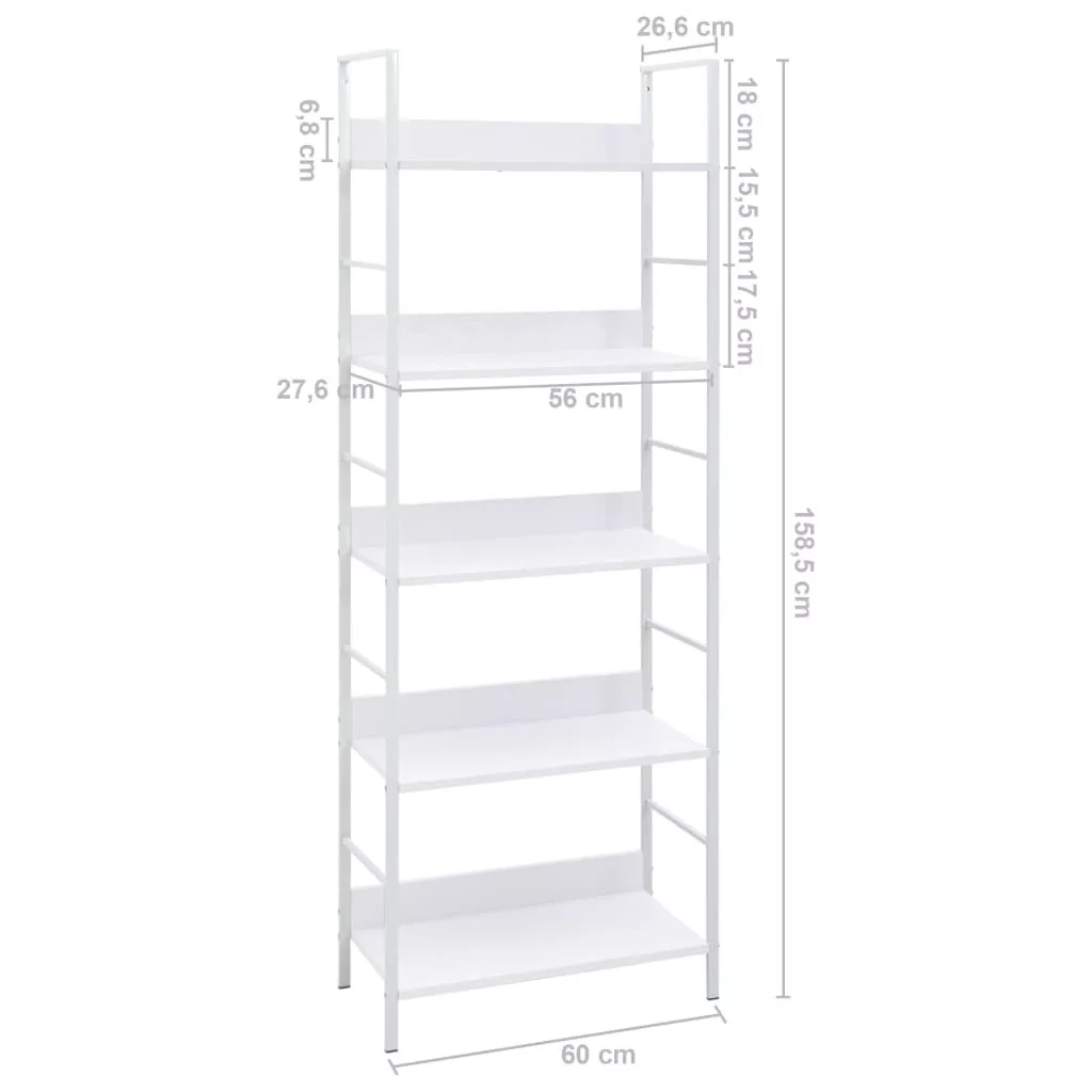 5 szintes fehér szerelt fa könyvespolc 60 x 27,6 x 158,5 cm