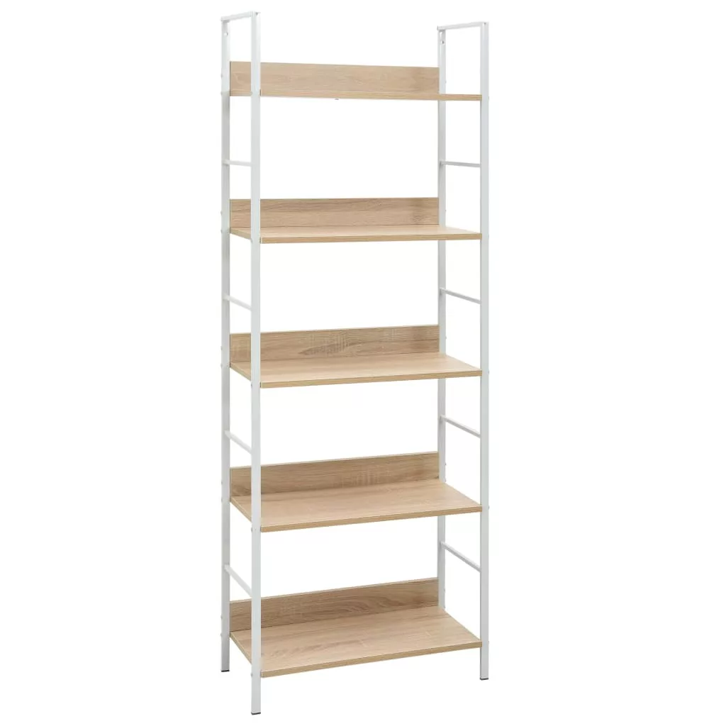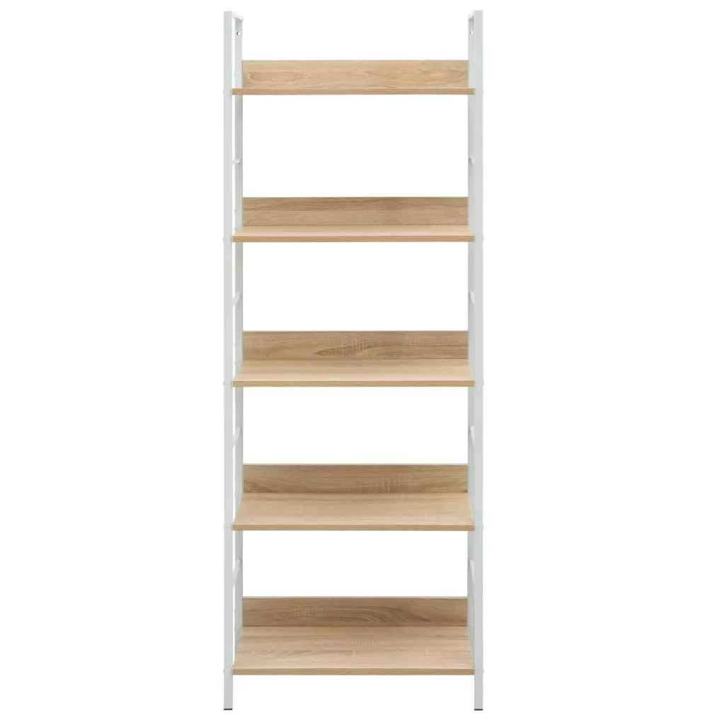 5 szintes tölgyszínű szerelt fa könyvespolc 60x27,6x158,5 cm